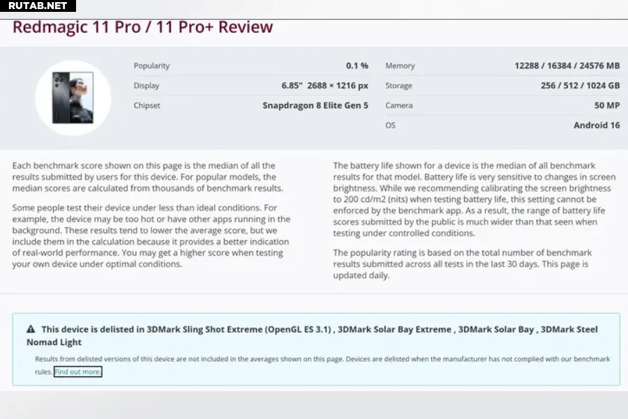 Платформа для тестирования производительности 3DMark удалила результаты для смартфонов RedMagic 11 Pro и RedMagic 11 Pro+ из своей базы данных.