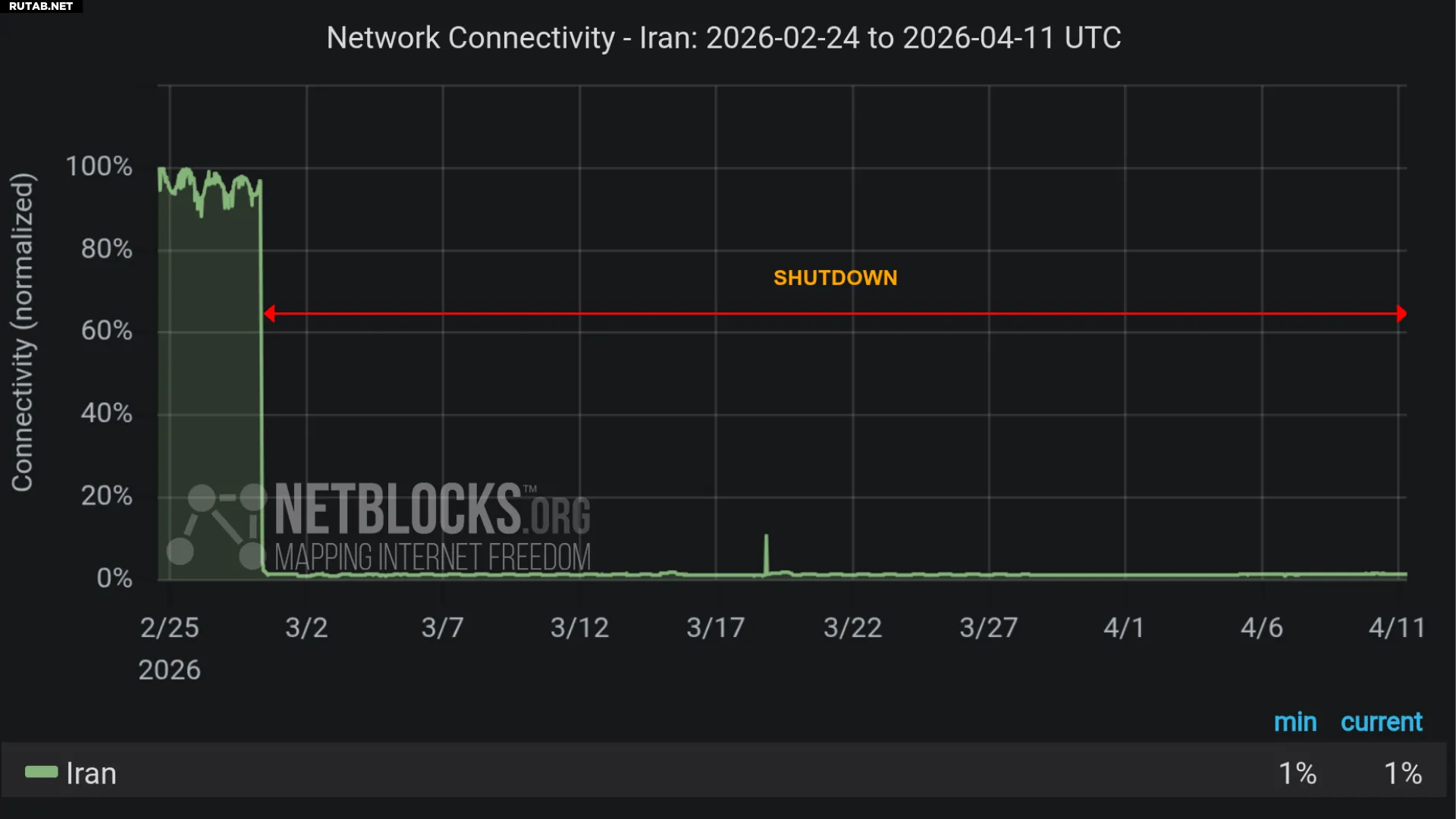 ⏳ Данные о сети показывают, что интернет-блэкаут в #Иране продолжается уже 44-й день, седьмую неделю подряд, превысив отметку в 1032 часа. Человеческие и экономические последствия затянувшейся меры цензуры продолжают накапливаться, устанавливая мировые рекорды по отключениям в подключенном обществе.