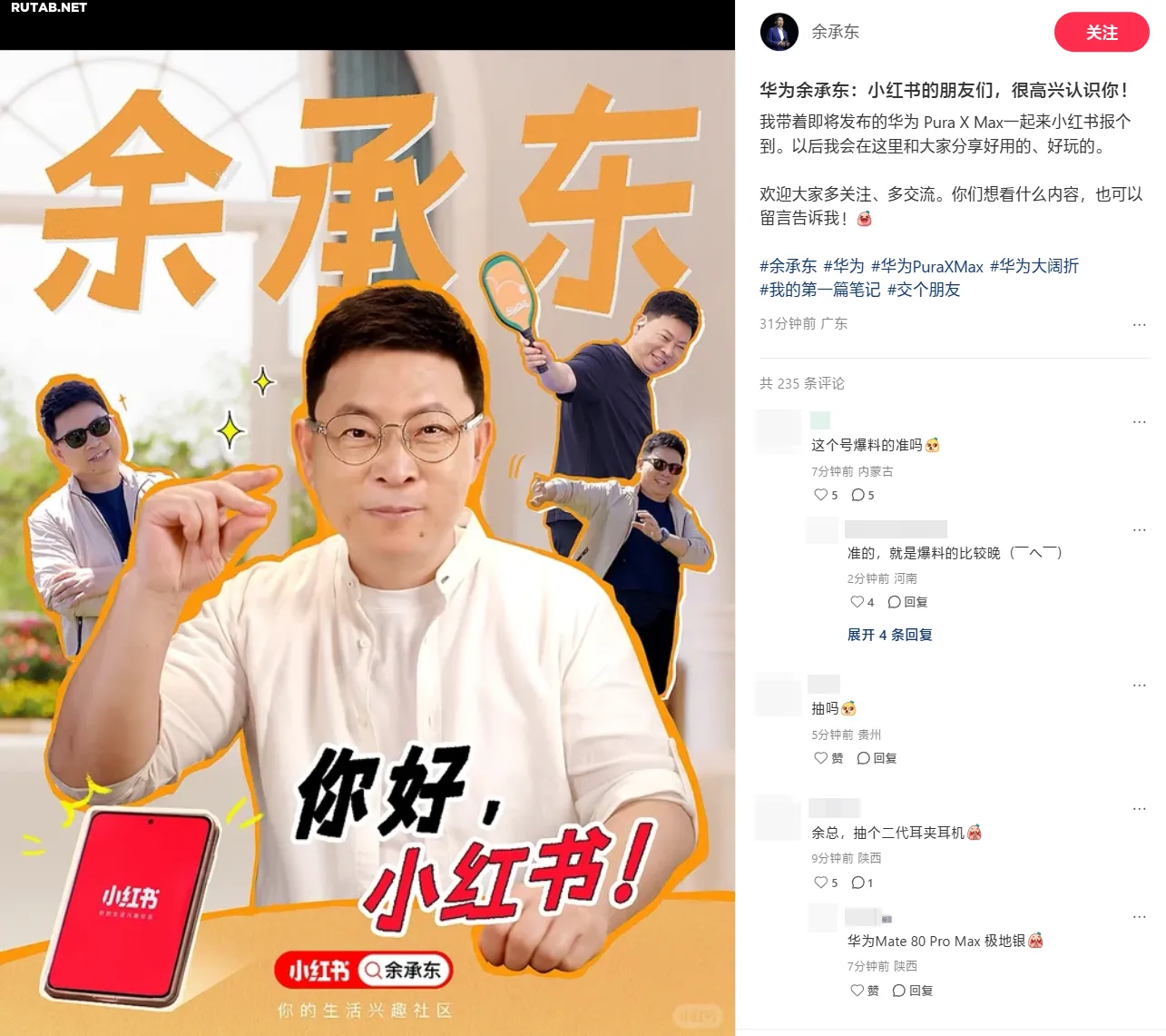 Глава подразделения потребительских устройств Huawei, Ричард Юй (Richard Yu, 余承东), опубликовал в своём новом аккаунте в социальной сети Xiaohongshu первое сообщение, в котором официально раскрыл название и дизайн нового флагманского складного смартфона Huawei Pura X Max.