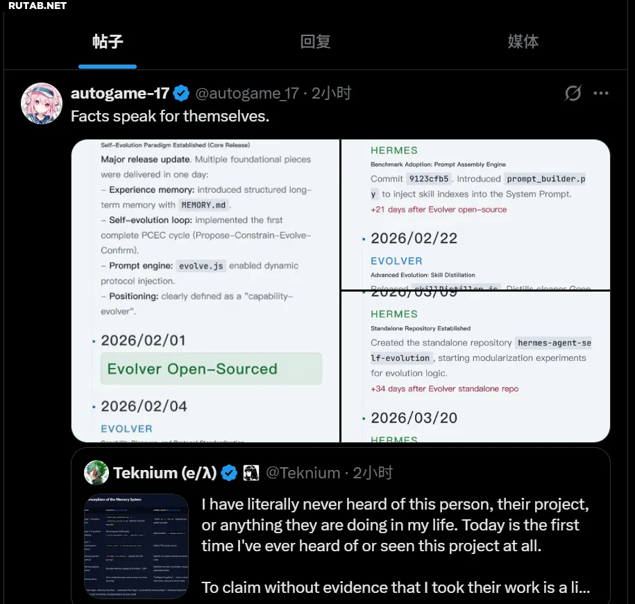 Однако это оправдание не было принято сообществом, так как проект до 25 февраля этого года был приватным, и его содержимое невозможно проверить. Функция самоэволюции, прославившая Hermes Agent, была выпущена только 9 марта, что позже даты релиза Evolver.
