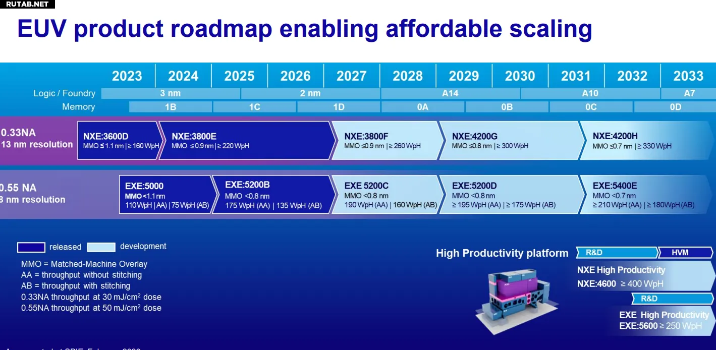 Однако, начиная со следующего года, значительно увеличится количество поставок супер-степперов High NA EUV. Системы с числовой апертурой (NA) 0.55 обладают более высоким разрешением по сравнению с текущими системами NA 0.33 и являются ключевым оборудованием для техпроцессов тоньше 2 нм.