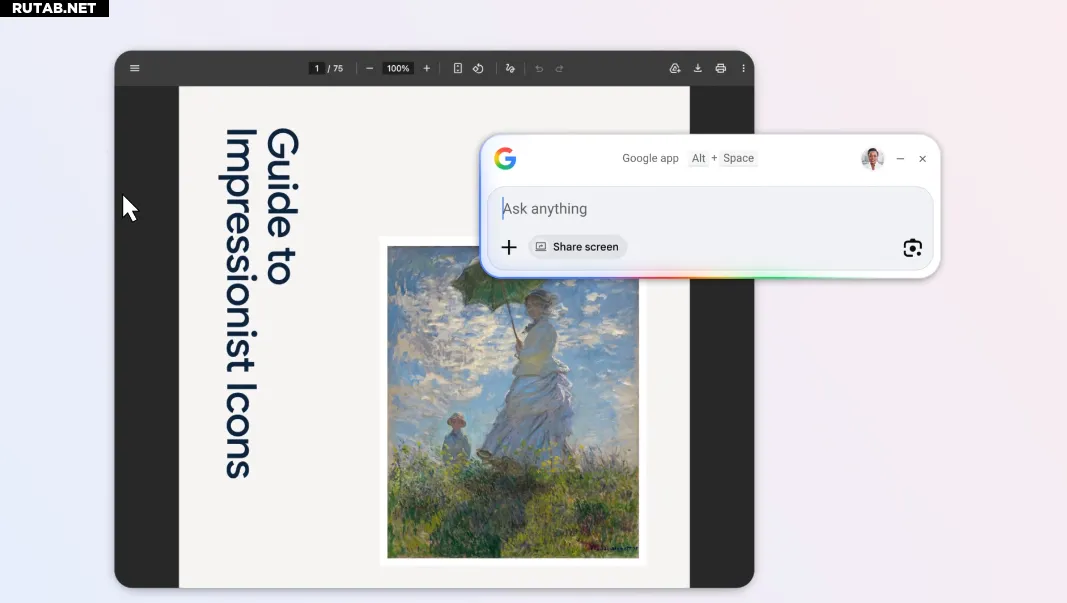 Функция совместного использования экрана дает возможность выбрать конкретное окно или весь экран и сразу задать вопрос, не переключаясь между приложениями. Это напоминает улучшенную ИИ-версию Spotlight в macOS.