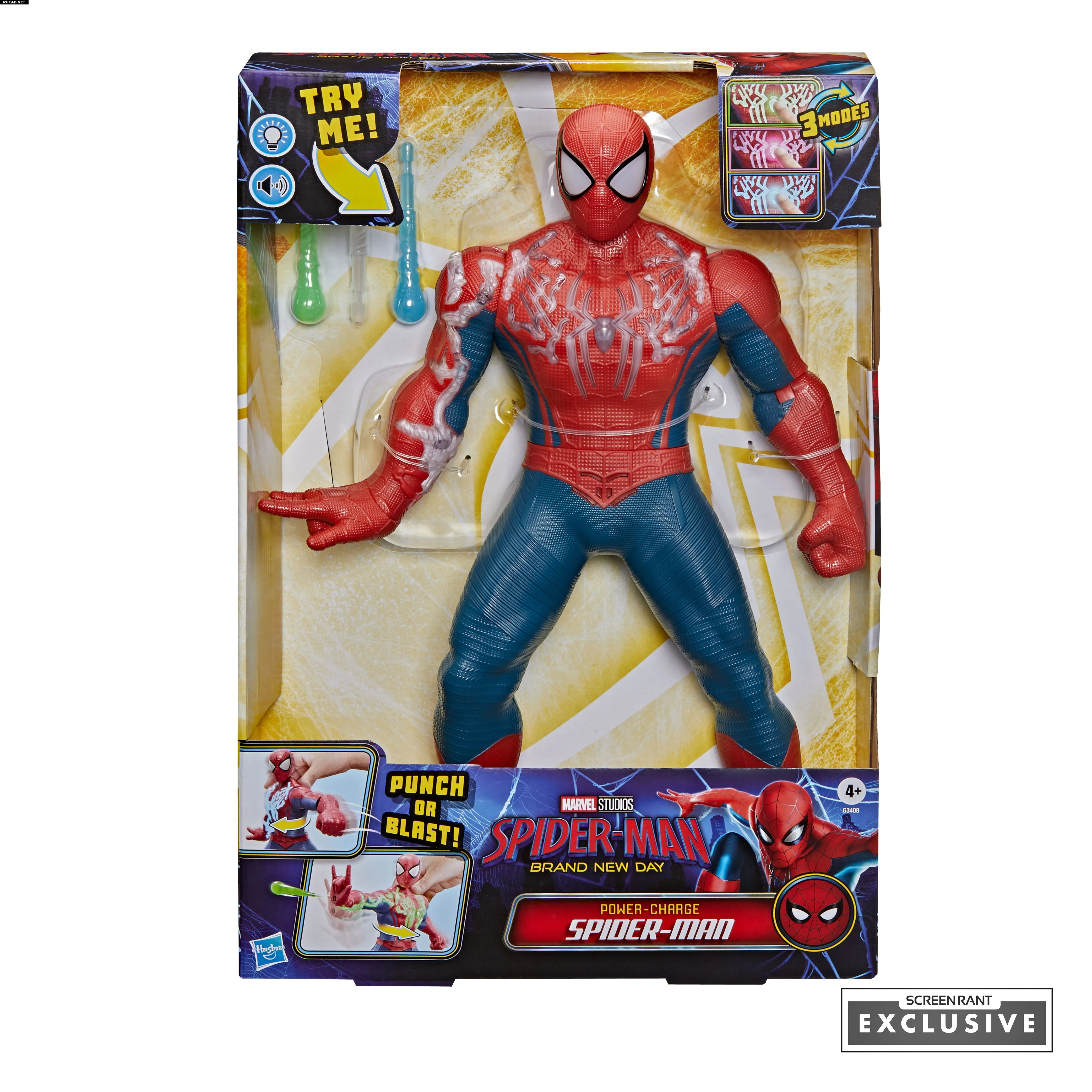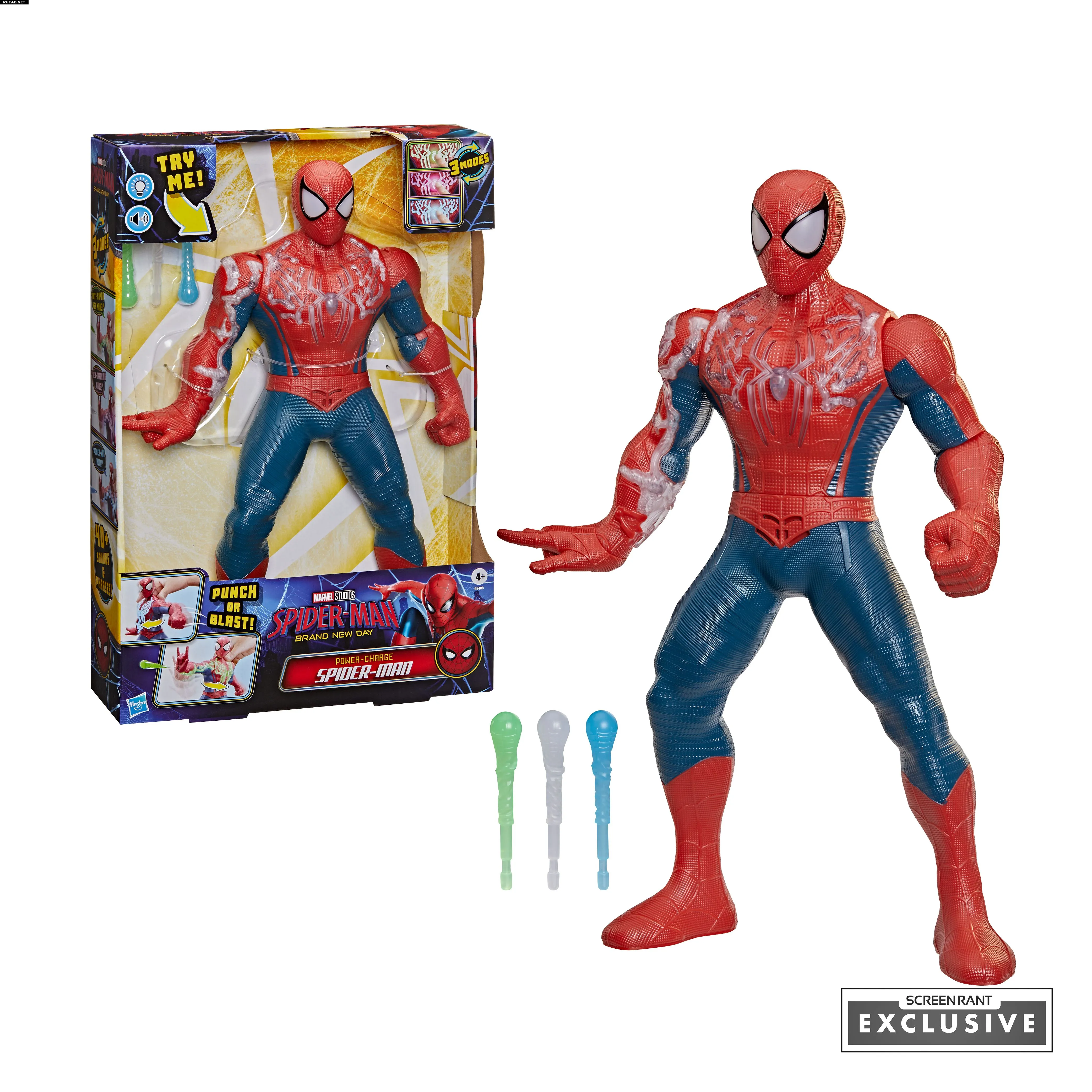 14,5-дюймовая фигурка с тремя режимами игры («Анти-гамма», «Паутинное слежение» и «Мощная паутина»), уникальной подсветкой и звуковыми эффектами. Поворот в поясе активирует удар или запуск паутины.