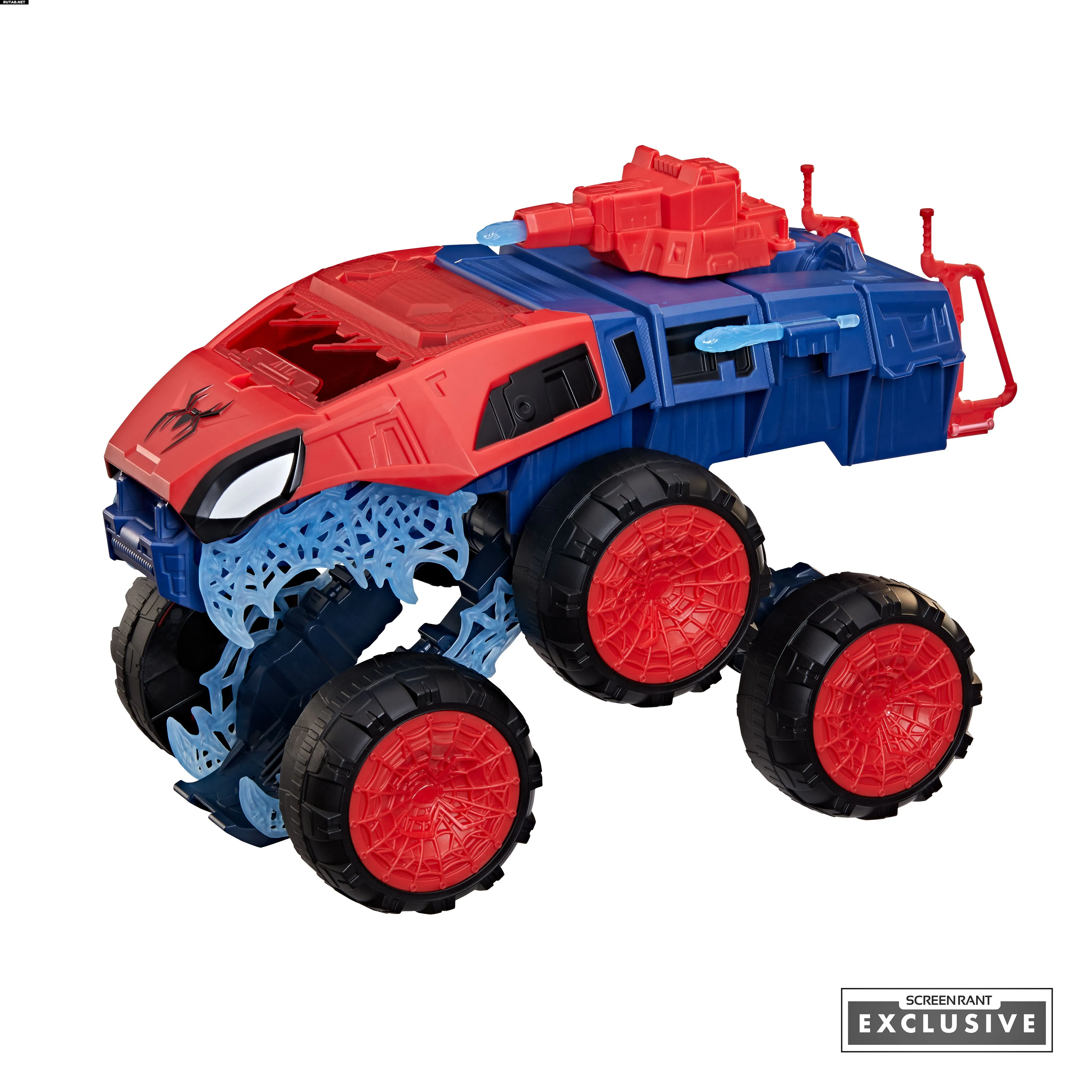Игрушка переключается между уличным и внедорожным режимом, имеет кабину для двух фигурок, паутину-клыки для третьей фигурки и пусковую установку снарядов.