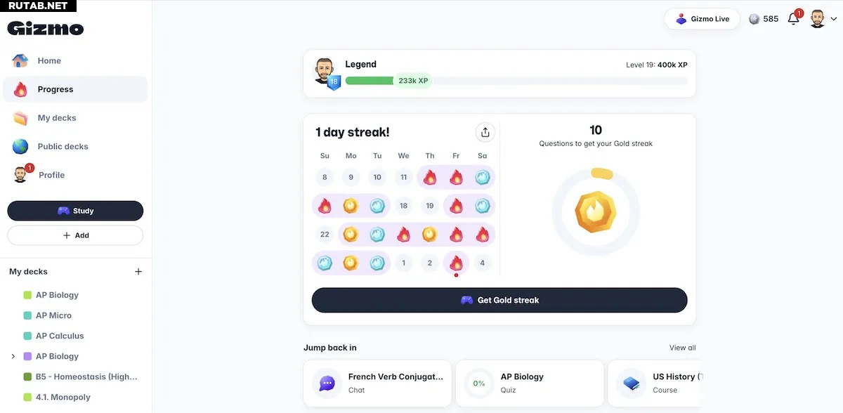 Платформа, рассчитанная на подростков и молодых людей, использует игровую механику для повышения вовлечённости. Такие функции, как таблицы лидеров, серии правильных ответов, ограниченное количество «жизней» за ошибки и возможность бросить вызов друзьям, призваны заставлять пользователей возвращаться.