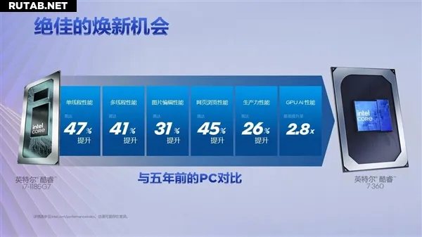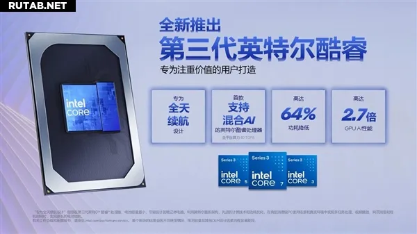 По заявлениям Intel, флагманская модель Core 7 360 демонстрирует значительный прирост производительности по сравнению с 11-м поколением Core (i7-1185G7, 2020 год): однопоточная производительность выросла на 47%, многопоточная — на 41%, а производительность в задачах ИИ на GPU — в 2.8 раза. По сравнению с предыдущим поколением Core 7 150U энергопотребление снижено на 64% при росте производительности GPU в ИИ-задачах в 2.7 раза. Новое семейство также стало первым в линейке Core с поддержкой гибридного ИИ.