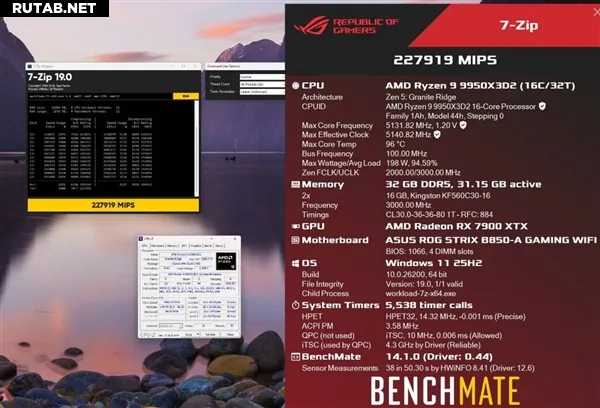 На авторитетном ресурсе HWBoT появились результаты тестирования новинки. В бенчмарке 7-Zip процессор показал результат 227919 MIPS, работая на максимальной частоте 5.1 ГГц при температуре 96°C.