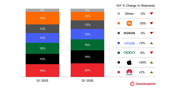В этой жёсткой конкуренции Huawei с долей рынка в 20% успешно возглавила отрасль, прочно заняв первое место. Это самый высокий квартальный показатель для компании с четвёртого квартала 2020 года, что свидетельствует о полномасштабном возвращении её рыночного доминирования.