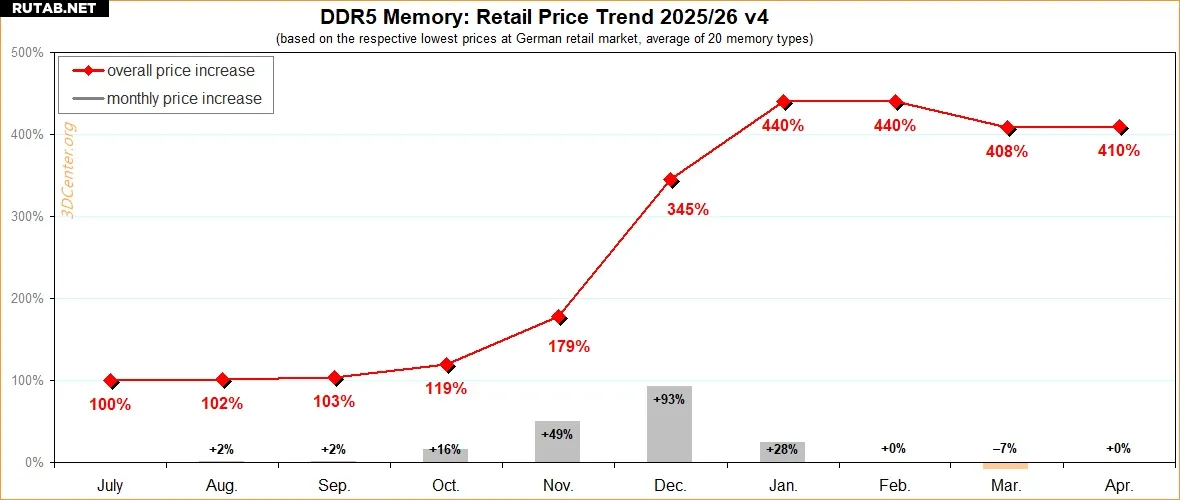 Короткая передышка на рынке компьютерных комплектующих оказалась лишь рыночной аномалией. Потребители с надеждой наблюдали за мартовским снижением цен на модули RAM, однако последние данные с немецкого рынка безжалостно корректируют эти ожидания.
