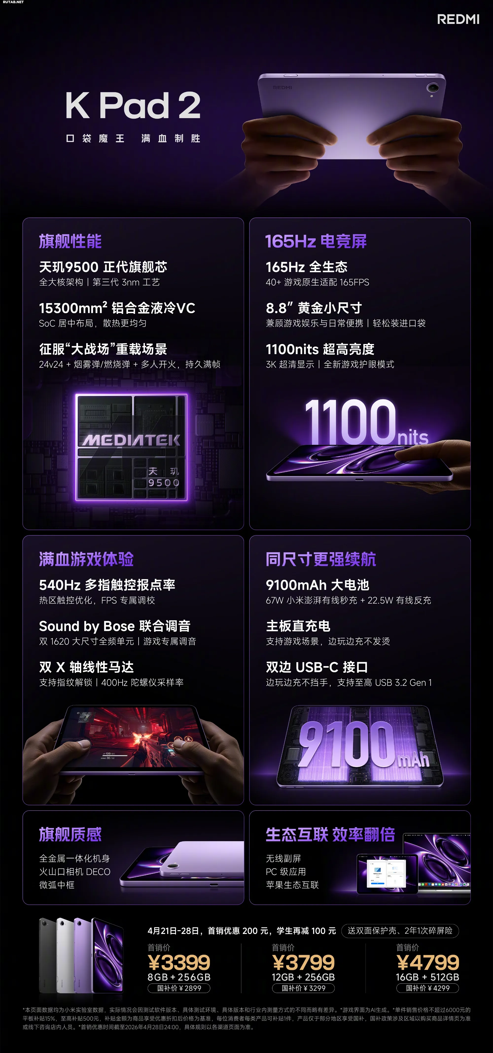 Redmi K Pad 2: игровой планшет с экраном 8,8 дюйма и чипом Dimensity 9500