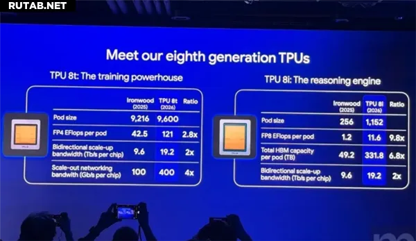 На конференции Google Cloud Next 2026 компания Google официально анонсировала восьмое поколение своих тензорных процессоров (TPU). Впервые в истории компании задачи обучения и вывода ИИ были разделены на два независимых чипа: TPU 8t для обучения моделей и TPU 8i для вывода.