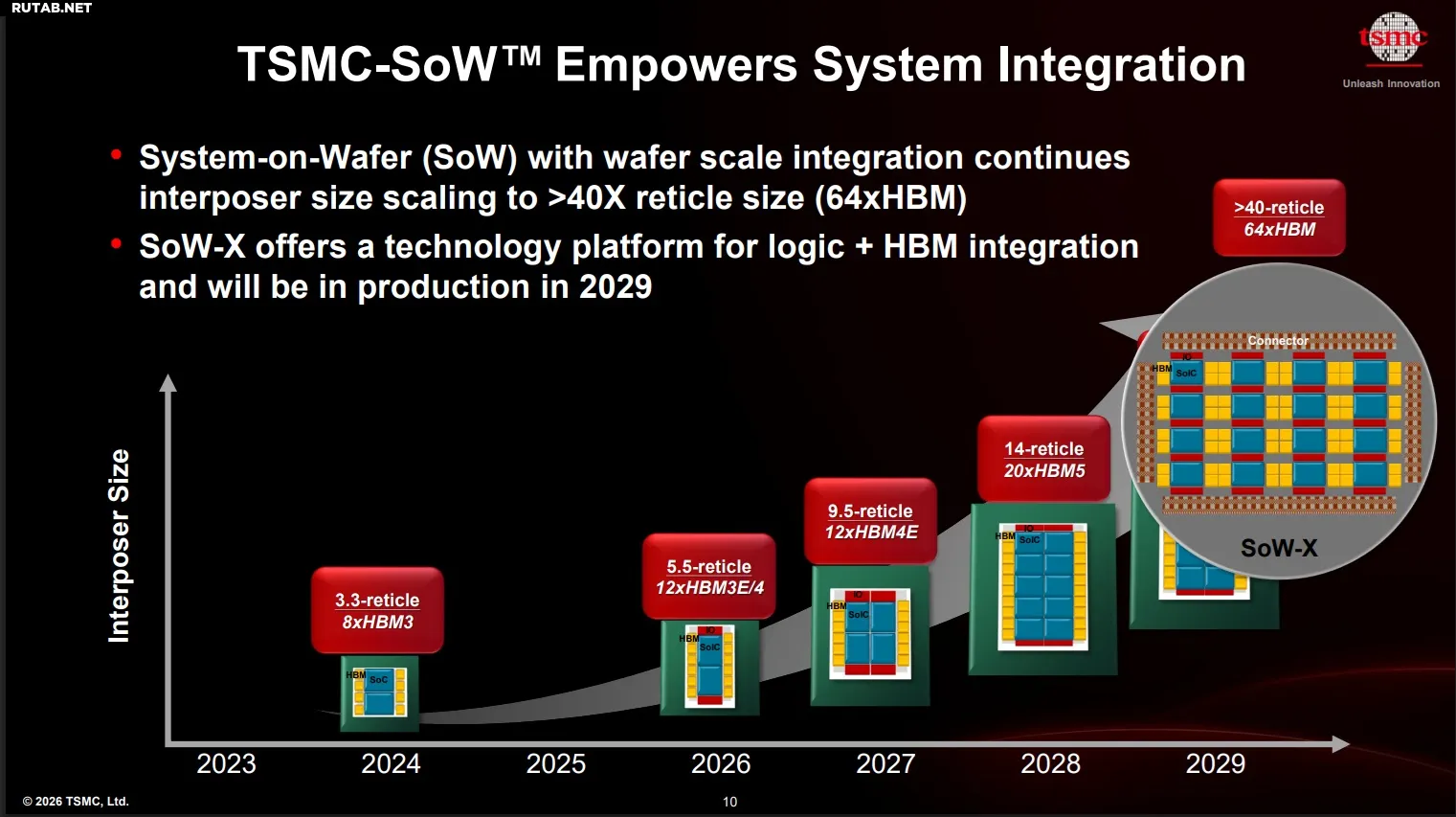 Прогресс в миниатюризации транзисторов идет рука об руку с постоянным развитием сложных методов соединения и интеграции микросхем. Компания объявила о значительном расширении возможностей своей флагманской технологии наложения нескольких слоев кремния друг на друга. К 2028 году планируется внедрение решений, позволяющих интегрировать десять вычислительных матриц и двадцать стеков быстрой памяти в одном мощном чипе.