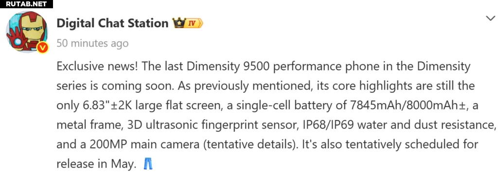 Компания iQOO, по слухам, работает над новым флагманским смартфоном на базе процессора Dimensity 9500 для китайского рынка. Пока нет точной информации о финальном названии устройства, но предполагается, что оно может войти в серию iQOO 15. Сегодня известный инсайдер Digital Chat Station опубликовал в Weibo новый пост, раскрывающий подробности о предполагаемом аппарате.