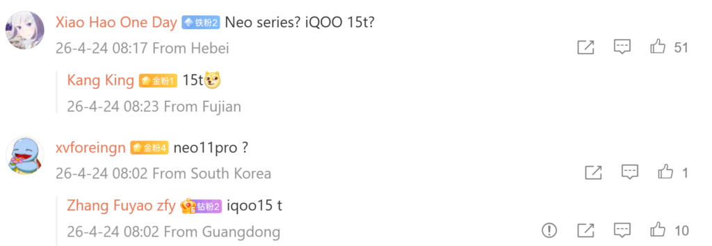 Согласно утечке, устройство может стать последней моделью суббренда в линейке, которая получит новый флагманский процессор. Хотя поначалу казалось, что речь идет о телефоне серии Neo 11, некоторые пользователи в комментариях предполагают, что он может выйти под названием iQOO 15T. Однако недавний отчет утверждал, что iQOO 15T будет оснащен встроенным кулером, но Digital Chat Station, по слухам, опроверг эту деталь для устройства, упомянутого в сегодняшней утечке. Поэтому читателям советуют дождаться дальнейших отчетов для большей ясности.