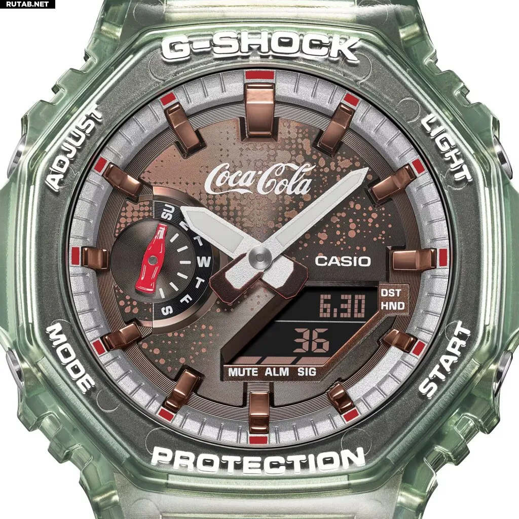 Компания Casio анонсировала лимитированную серию часов G-Shock в коллаборации с Coca-Cola. Модель GA-2100CC-3A приурочена к 140-летию культового бренда газировки и отличается дизайном, вдохновлённым её знаменитой стеклянной бутылкой. Часы уже доступны для предзаказа в Японии по цене 27 500 иен (около 17 000 рублей).