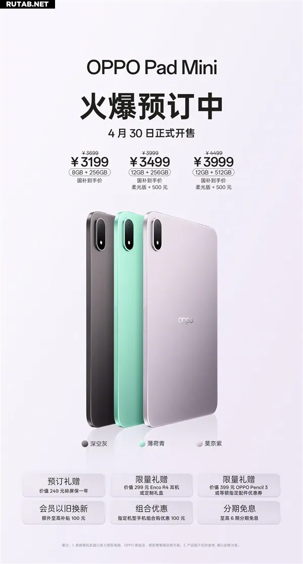 Компания OPPO официально анонсировала дату начала продаж своего первого компактного планшета — OPPO Pad Mini. Новинка поступит в продажу 30 апреля. С учётом государственных субсидий стартовая цена составит 3199 юаней.