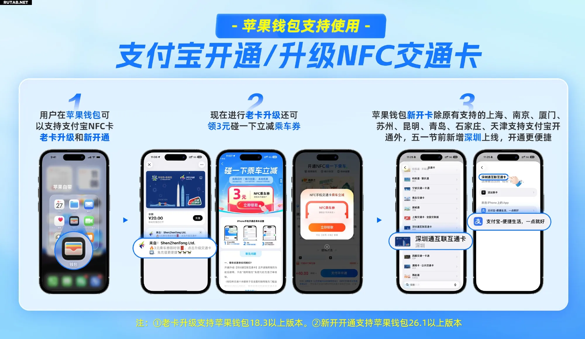Чтобы побудить пользователей обновить и активировать свои NFC-карты для проезда в общественном транспорте, Alipay запускает рекламную акцию: пользователи, обновившие или активировавшие свои NFC-карты через Apple Wallet, могут получить купон на скидку в 3 юаня на проезд в общественном транспорте, который можно напрямую вычесть из стоимости проезда в автобусе и метро.