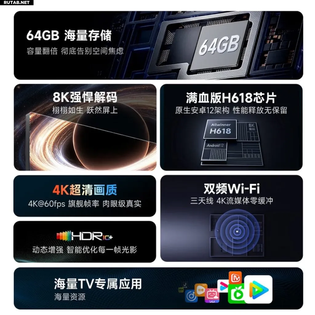 Новая модель оснащена улучшенным чипсетом Allwinner H618 с четырёхъядерным процессором ARM Cortex-A53. За графику отвечает Mali-G31 MP2, обеспечивающий эффективную обработку изображения и стабильное воспроизведение. Приставка получила 2 ГБ оперативной памяти LPDDR4 для многозадачности и быстрого запуска приложений, а также 64 ГБ встроенной памяти eMMC для хранения приложений, медиафайлов и системных данных.