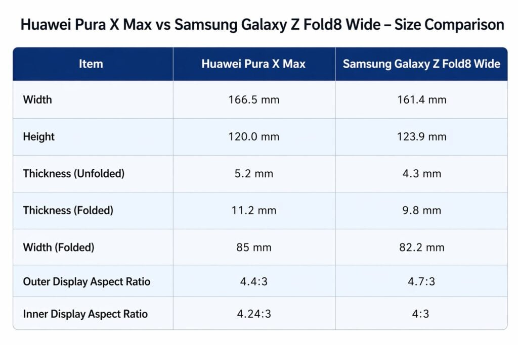 Galaxy Z Fold 8 Wide против Huawei Pura X Max: сравнение размеров