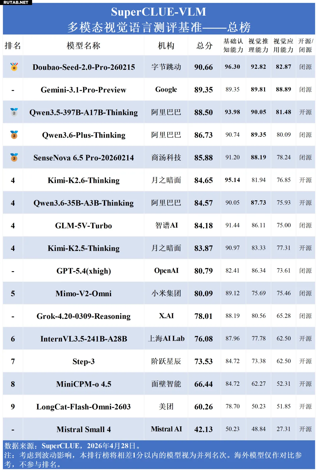 Опубликованы результаты апрельского рейтинга SuperCLUE-VLM за 2026 год, оценивающего мультимодальные визуально-языковые модели на китайском языке. Согласно данным, китайские разработки совершили значительный прорыв, заняв лидирующие позиции.