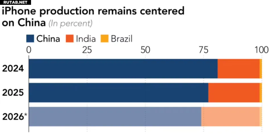 Согласно данным, в 2025 году доля сборки iPhone в Индии составила около 22% от мирового объема, в основном для поставок на рынок США. Ожидается, что в 2026 году этот показатель незначительно вырастет до 25%, что значительно ниже первоначальных ожиданий Apple.