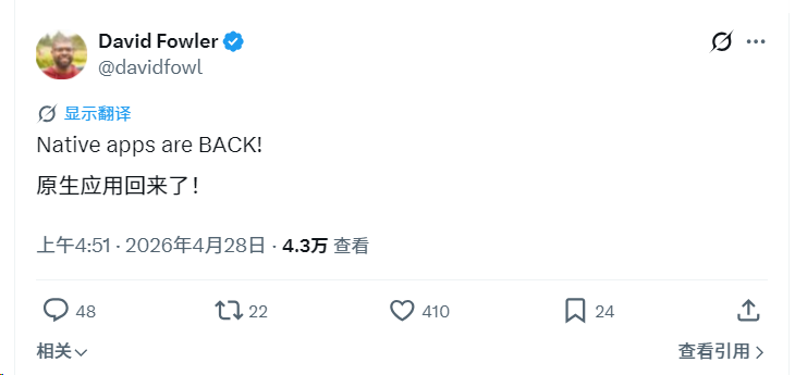 Старший инженер Microsoft Дэвид Фаулер (David Fowler) заявил в социальных сетях, что «нативные приложения возвращаются» (Native apps are back), намекнув на постепенную замену веб-оболочек в Windows 11 на полноценные нативные реализации.