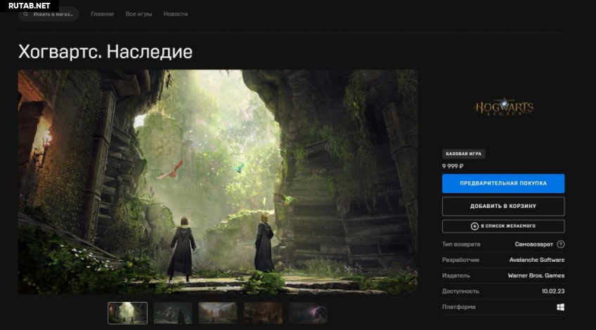 В Epic Games Store страница «Хогвартс. Наследие» доступна, но игра стоит 9999 рублей. В других странах она продаётся за 60 usd или евро.