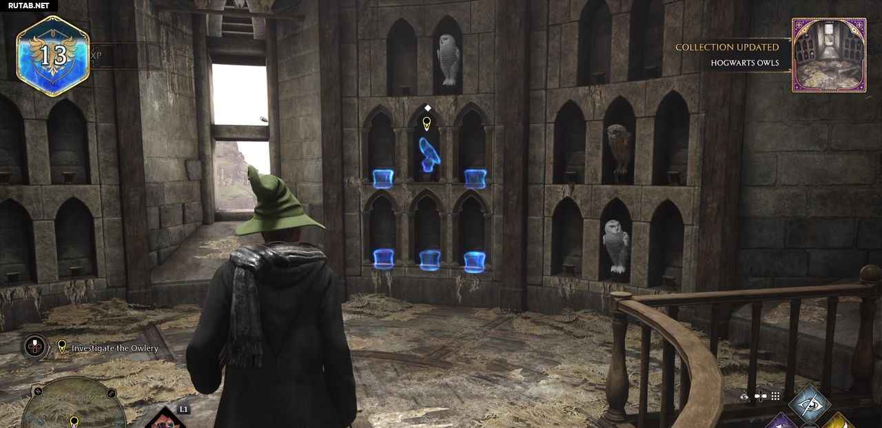 Переместитесь во двор колокольни из крыла колокольни и направляйтесь к месту назначения. Войдите в Совятню и поднимитесь наверх. Секция наверху разделена на две части: область с лестницей и область над лестницей. В обоих районах есть несколько небольших окуней. У некоторых из них есть ручки, которые вы можете опустить с Акцио, чтобы увидеть, не скрывают ли они статуи галкрадов. Сделайте это в обеих областях, убедившись, что вы не забыли о насестах на самом верху Совятня. Наведение камеры после подъема по лестнице поможет вам найти их. Затем перейдите к маркеру следующего квеста, чтобы взаимодействовать с более темной статуей галкрада.