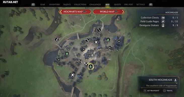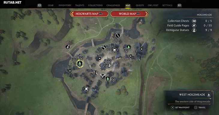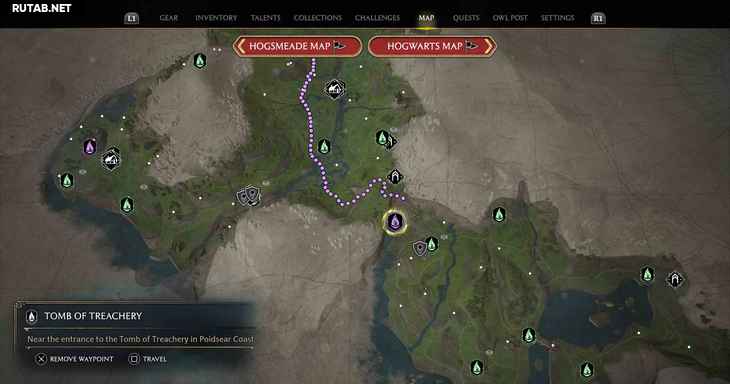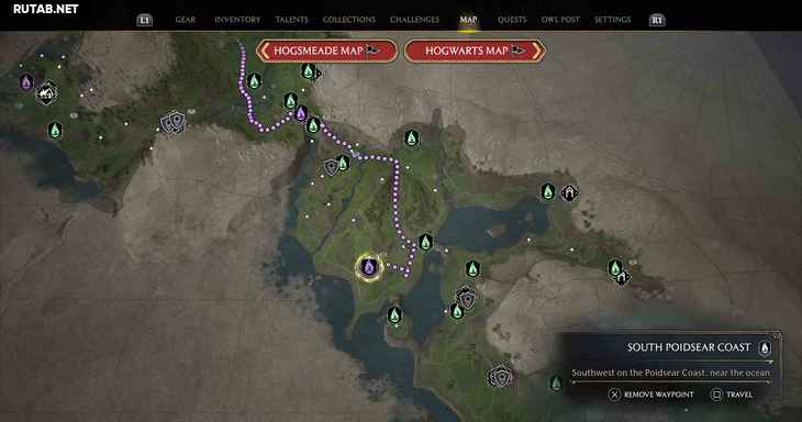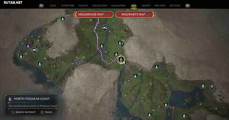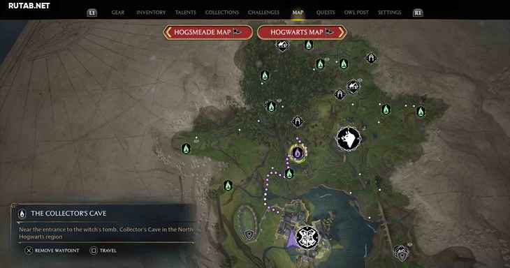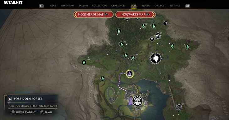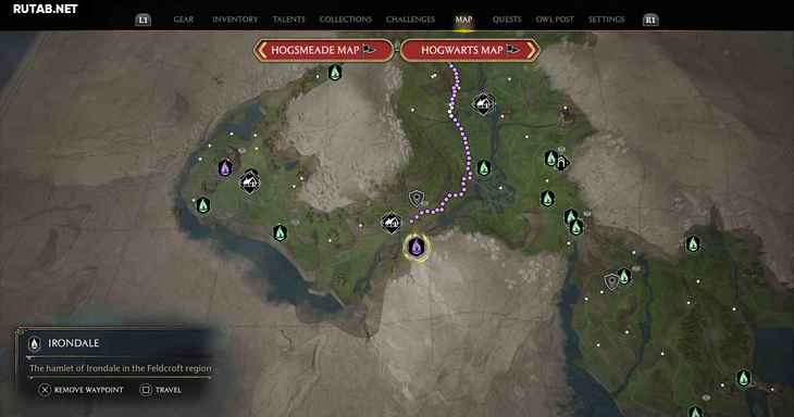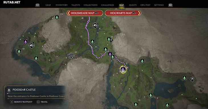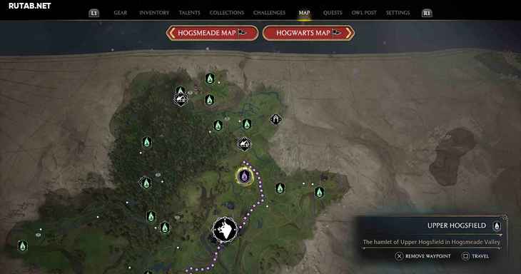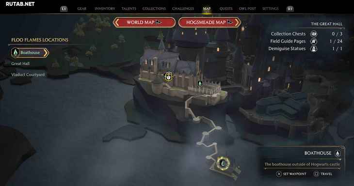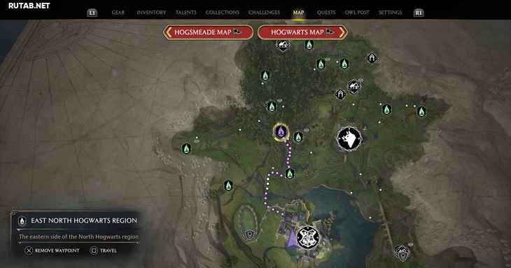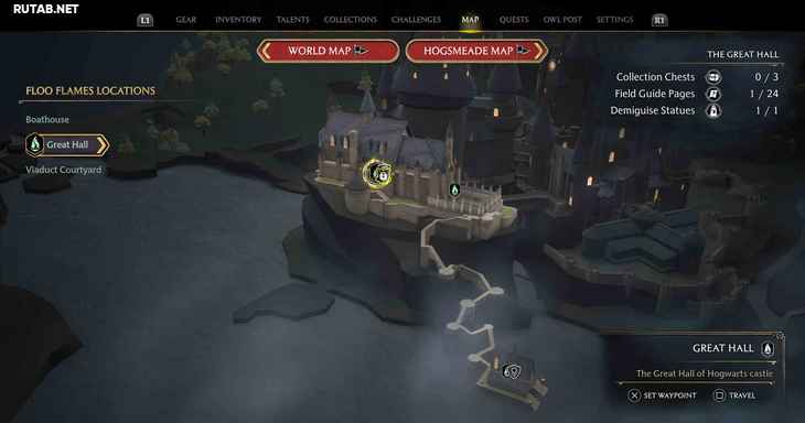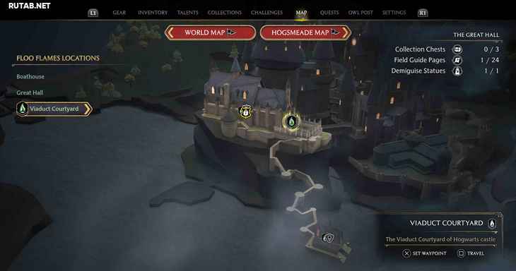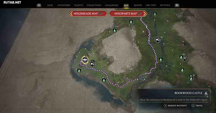 В замке Хогвартс вы можете либо щелкнуть по значку флага, чтобы открыть разделы замка, либо щелкнуть левую боковую панель на экране карты, чтобы быстро выбрать летучее пламя. Чтобы вернуться в Зал картографии и Выручай-комнату, вы можете выбрать «Секретные комнаты» в левой части экрана карты Хогвартса, а затем выбрать эти комнаты.