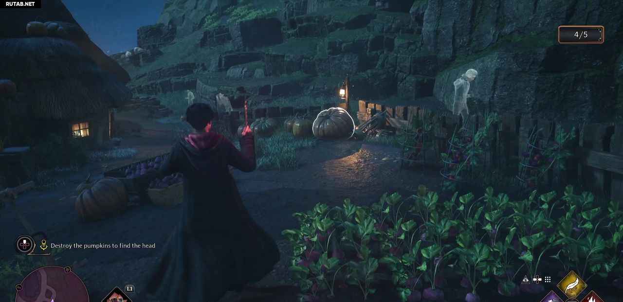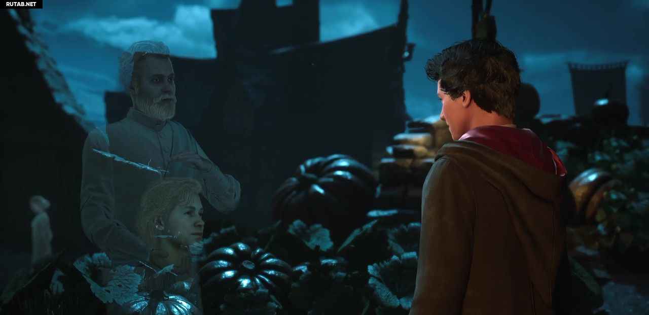 Вы сейчас на кладбище Хогсмида. Направляйтесь к маркеру следующего квеста, у дома с тыквенным полем и поговорите с призраком.