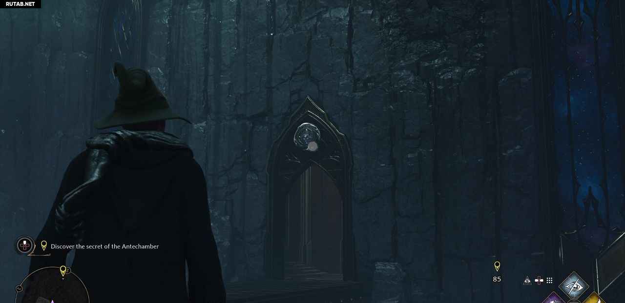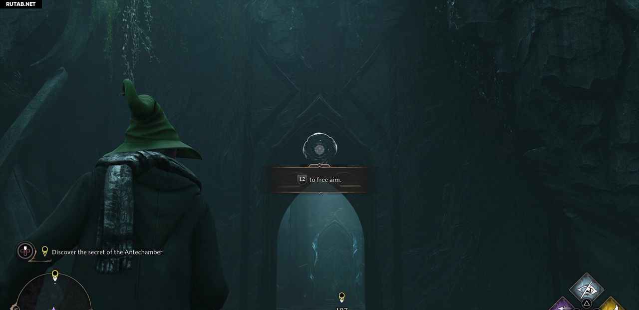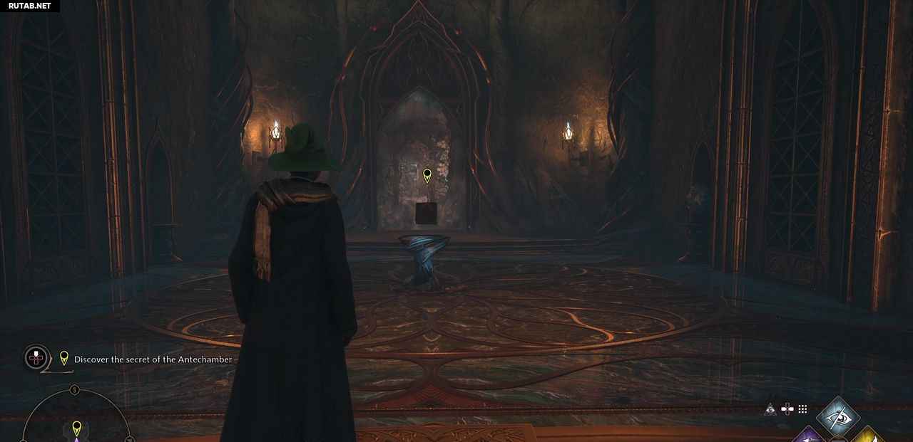 Откройте ворота в Запретную секцию и откройте сундук у лестницы. Затем продолжайте спускаться вниз. Как только вы спуститесь вниз, вам покажут туториал о том, как отвлечь окружающих врагов с помощью базового заклинания.