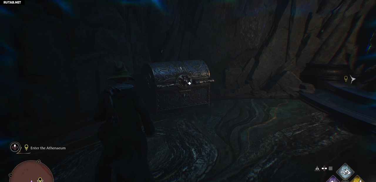 Пройдите через портал, спуститесь вниз и откройте сундук слева от вас. Затем войдите в Атенеум.