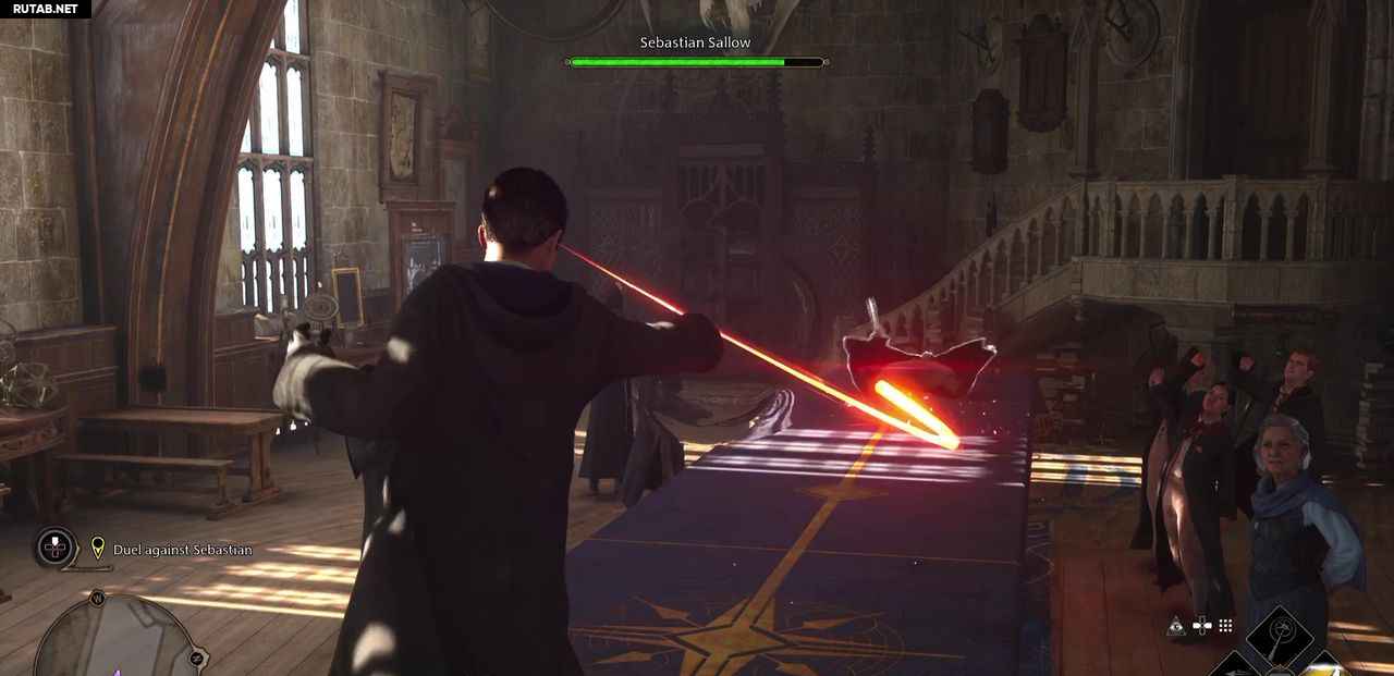 Время для битвы сейчас! Примените Левиосо к Себастьяну, товарищу по Слизерину, после чего повторите Базовое заклинание, чтобы свести на нет его полосу здоровья. Не забудьте нажать