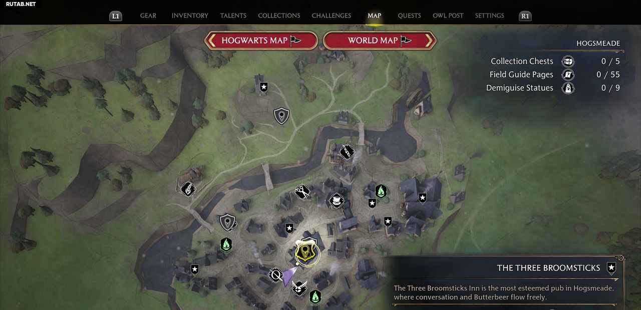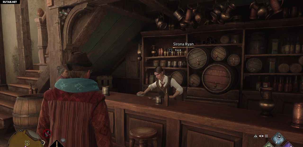 Отправляйтесь в летучее пламя Южный Хогсмид и направляйтесь к маркеру квеста внутри Трех метел, чтобы поговорить с Сироной, хозяйкой паба.