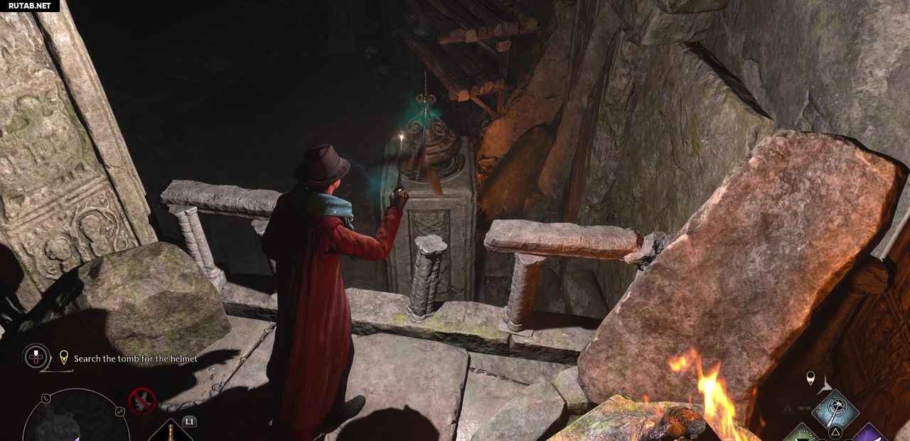 В следующей комнате вы встретите Инфернал, новый тип врагов, которых нужно сначала сделать уязвимыми с помощью заклинаний на основе огня, таких как Конфринго и Инсендио. После того, как вы использовали любой из них, вы можете использовать базовые заклинания, чтобы еще больше ослабить их. Возьмите сундук с уступа здесь и используйте Депульсо на камнях в той же комнате, чтобы получить доступ к добыче, затем продолжайте движение по туннелям.