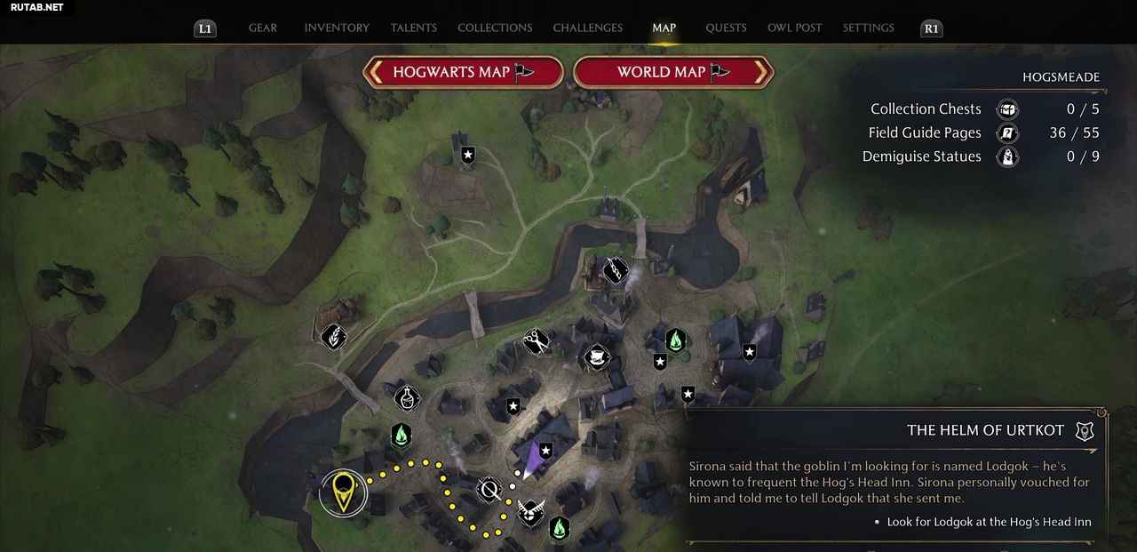 Выйдите из «Трех метел» и пройдите к следующему маркеру миссии. Войдите в Кабанью голову и поговорите с Лодгоком, сидящим за столом.
