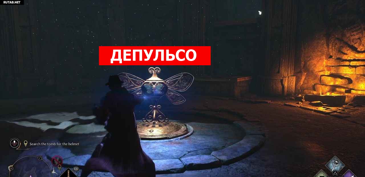 Теперь спрыгните вниз и используйте Люмос, чтобы переместить все три мотылька в дверные проемы, чтобы пройти дальше в гробницу. Обыщите следующую комнату, убедившись, что вы используете Депульсо на баррикаде, чтобы найти еще два сундука на двух уступах, а затем бросьте противовес, чтобы открыть отверстие в полу, которое ведет вперед.