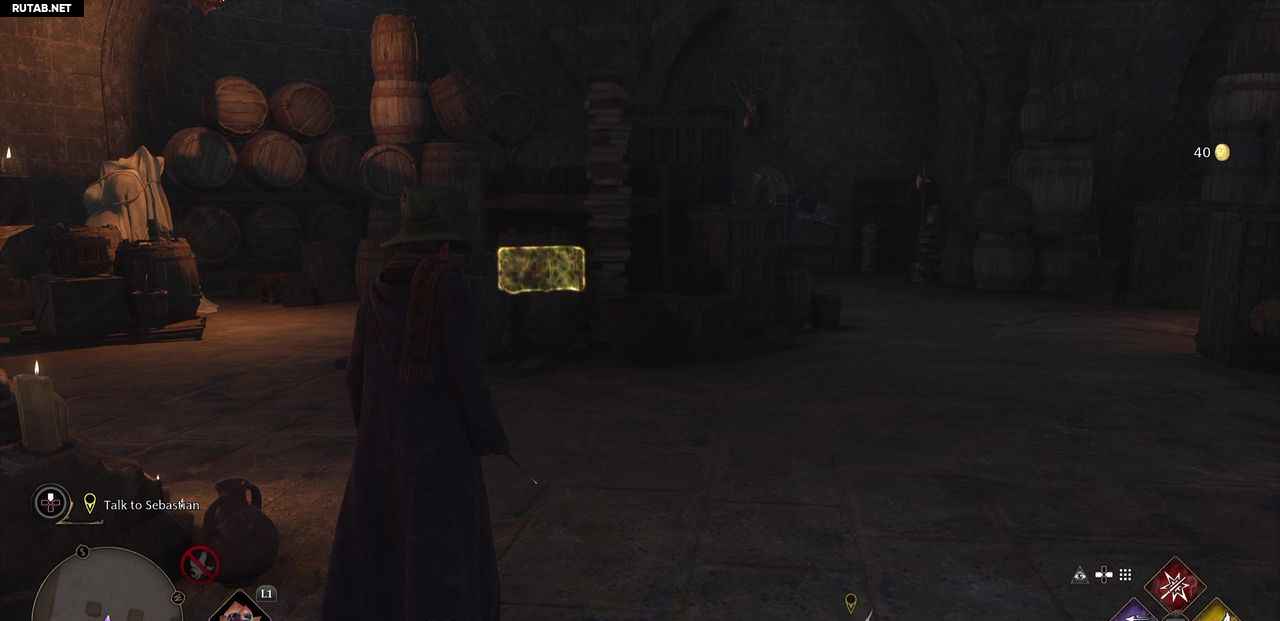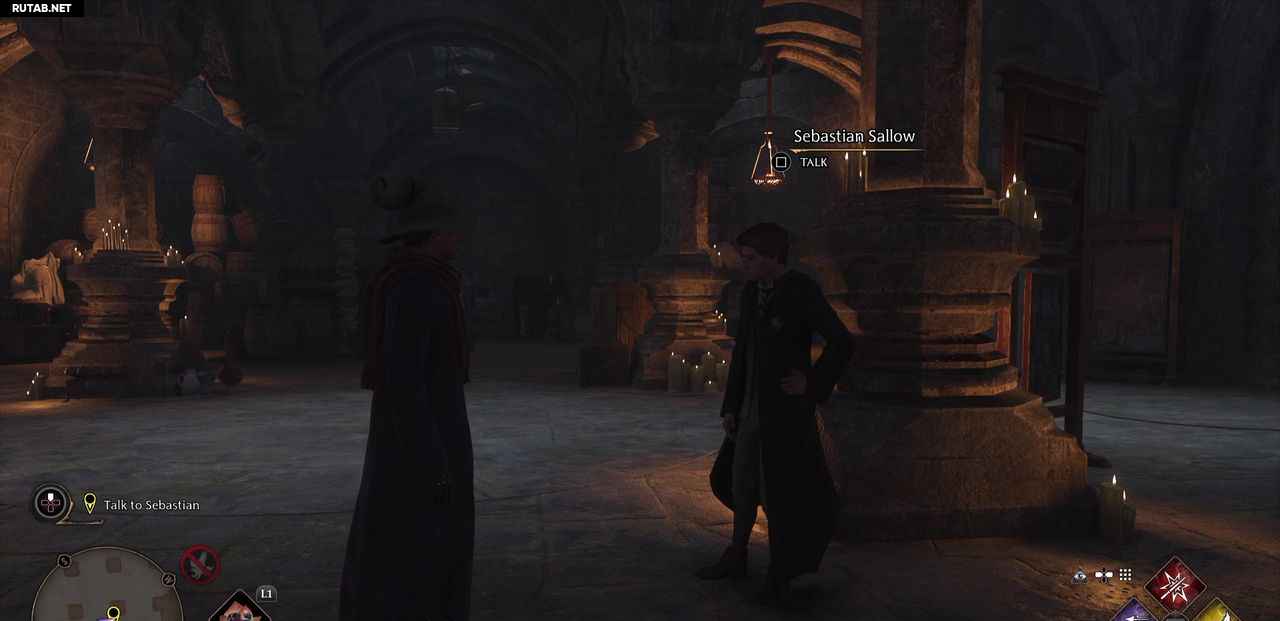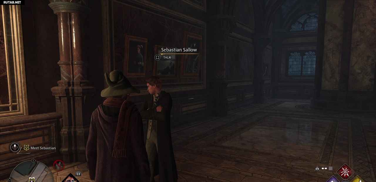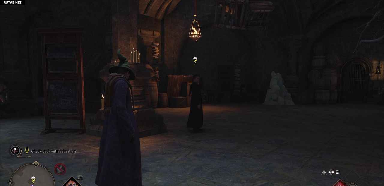Переместитесь в Летучее пламя защиты от темных искусств в Астрономическом крыле, а затем перейдите к маркеру квеста, чтобы поговорить с Себастьяном.