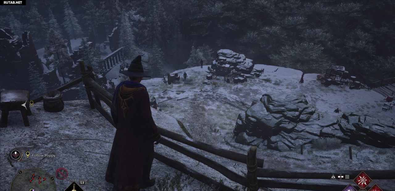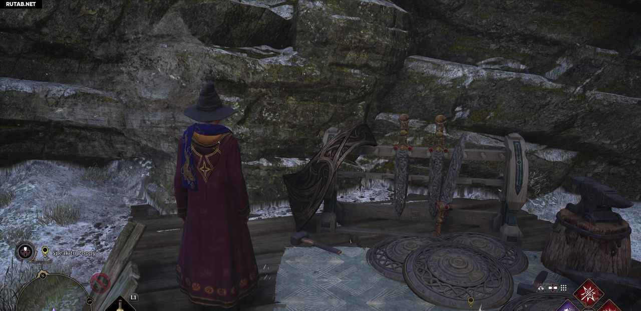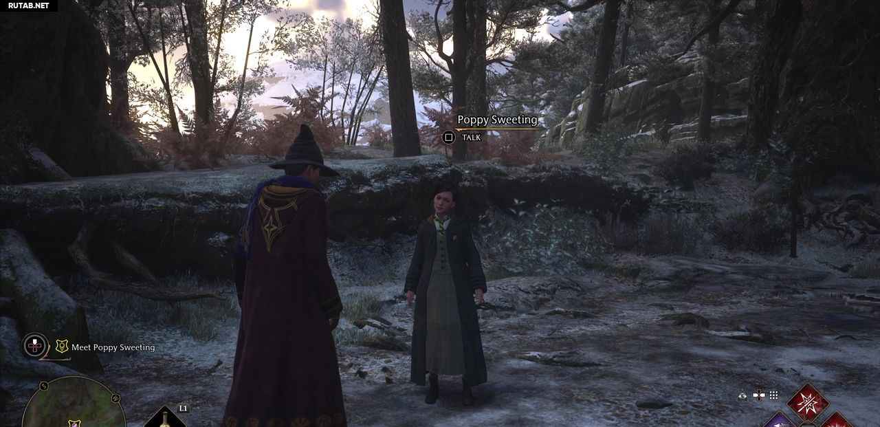 Летите к квестовому маркеру и поговорите с Поппи, ученицей Пуффендуй.