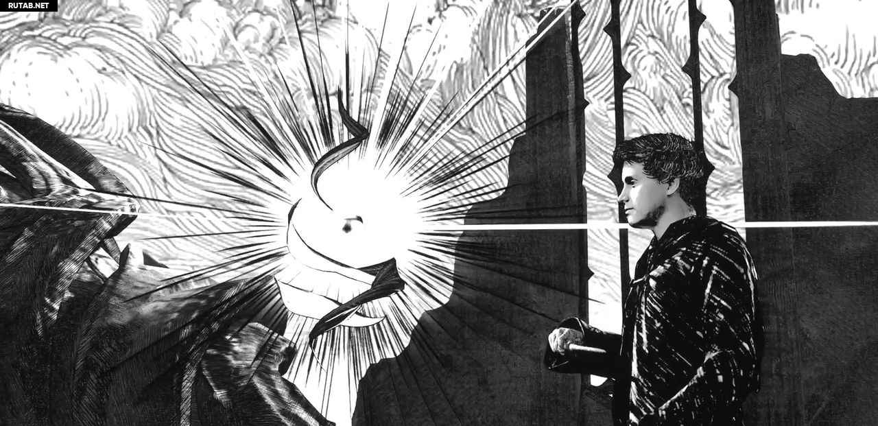 Поднимитесь наверх и взаимодействуйте с книгой. Теперь вы окажетесь в черно-белом нарисованном мире.