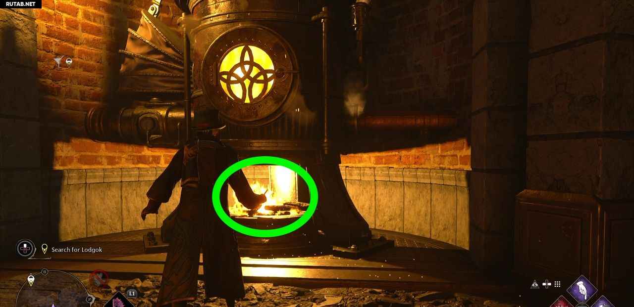В следующей комнате победите врагов, затем спуститесь вниз по лестнице слева от того пути, по которому вы должны идти, чтобы найти добычу. Теперь вернитесь наверх и используйте Инсендио или Конфринго на печи, чтобы зажечь ее, а затем нажмите на рукоятку подъемника, чтобы подняться. Перейдите к маркеру следующего квеста, чтобы начать кат-сцену.