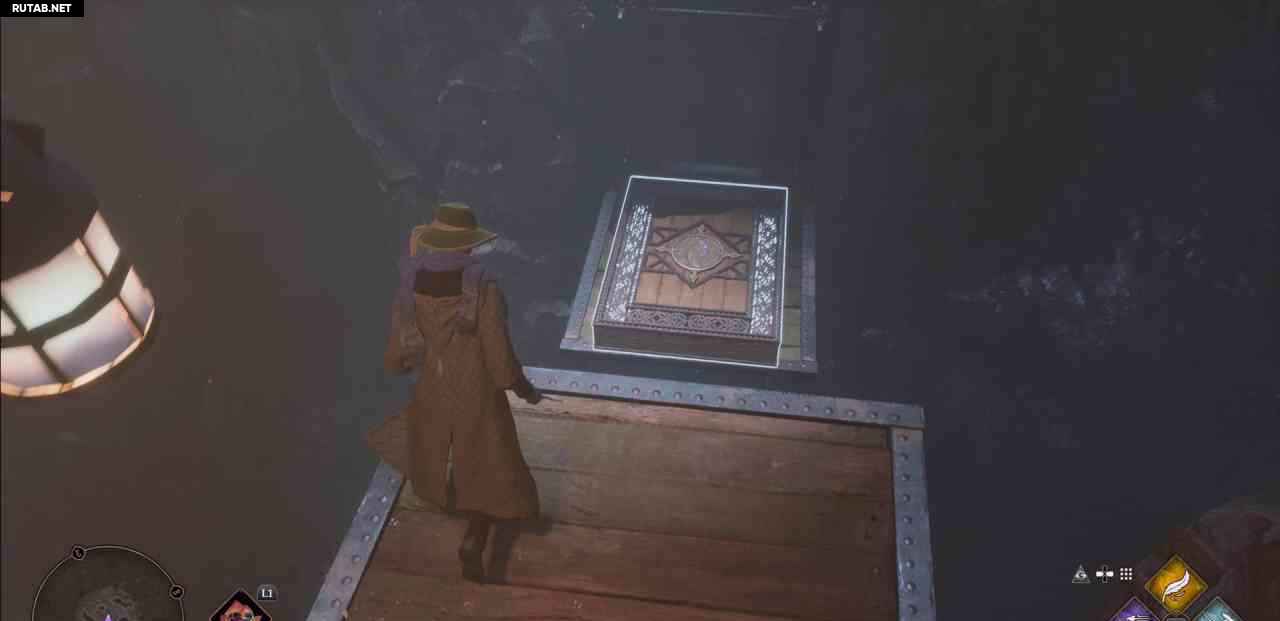 Репаро, затем Акцио на металлической защелке над платформой, затем Левиосо на платформе, и прыгайте на платформу, чтобы двигаться дальше.