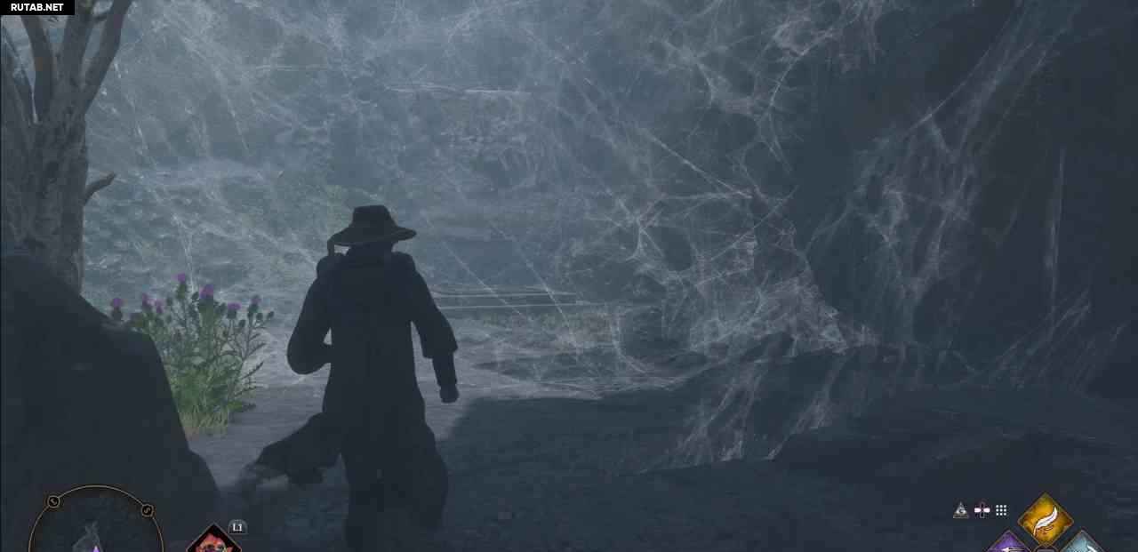 Примените Инсендио, чтобы уничтожить паутину и двигаться дальше.