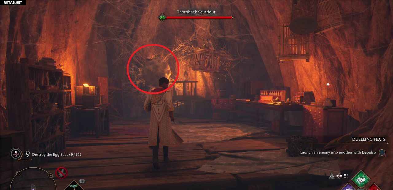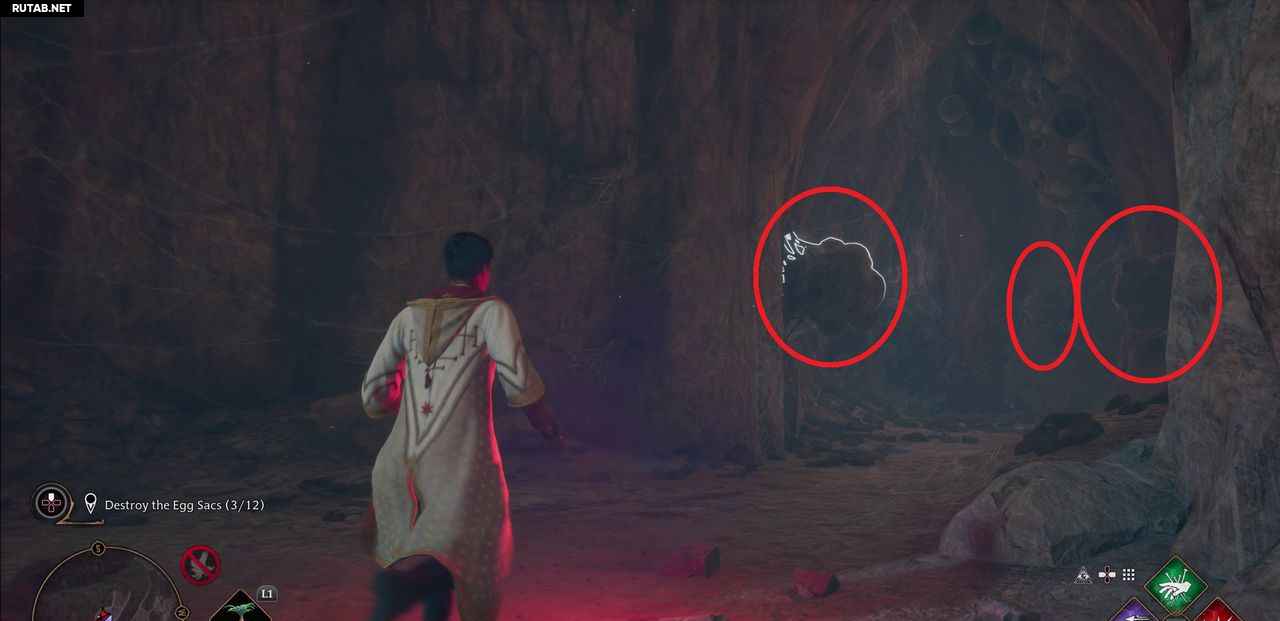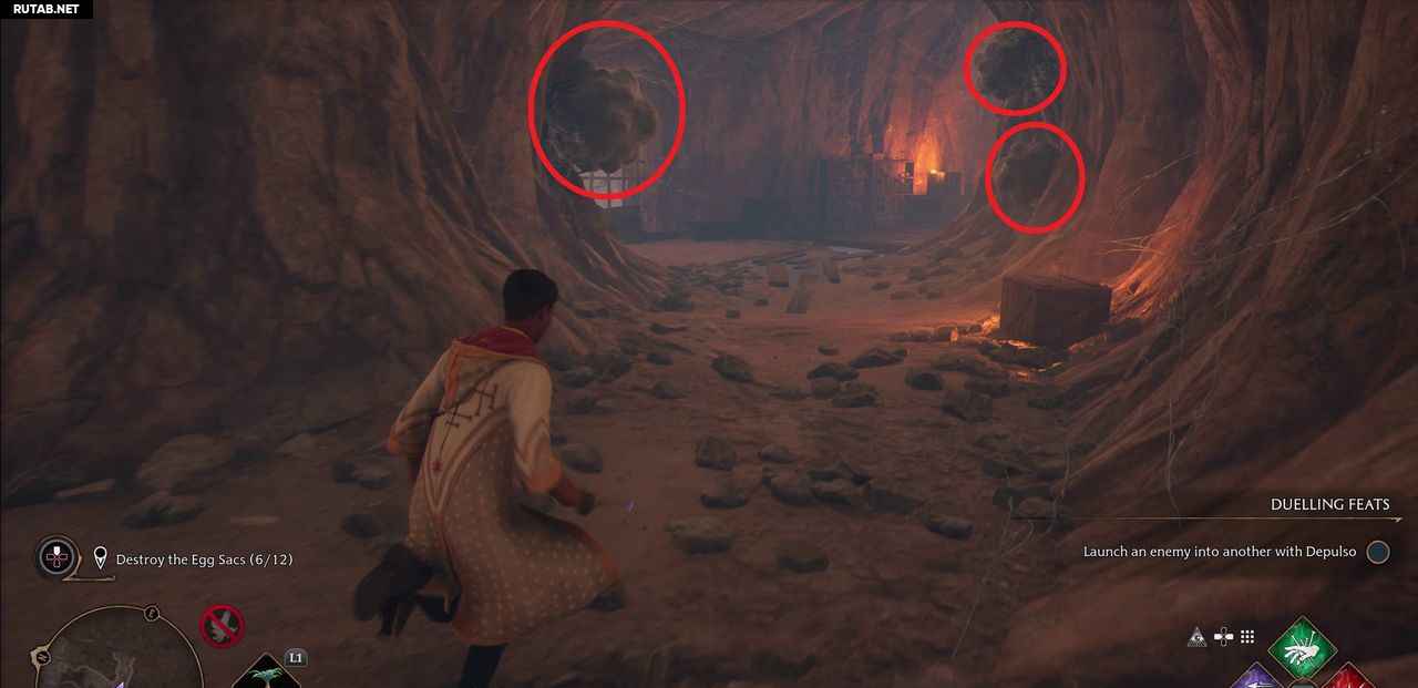 Источником яиц является большой паук. Просто победите его, здесь Инсендио творит чудеса.