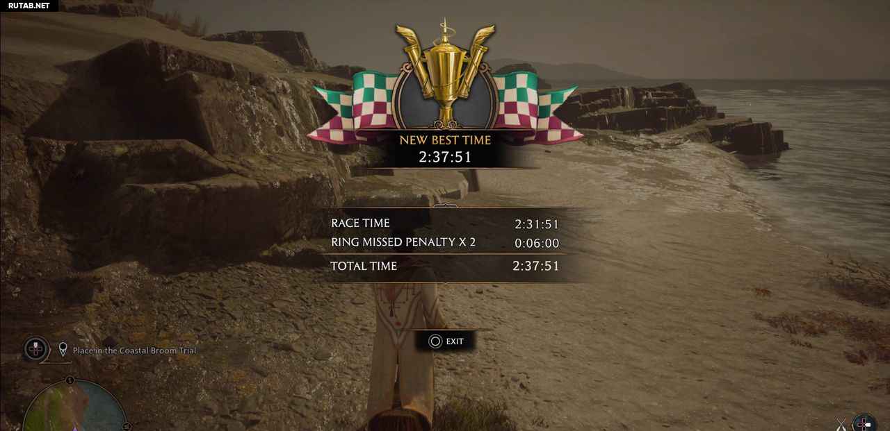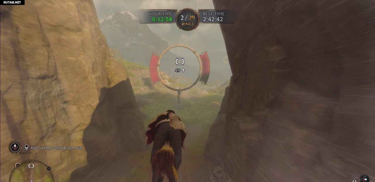 Как обычно, вы можете пропустить два-три кольца, но вы должны постараться попасть в большинство желтых пузырей, чтобы набрать достаточную скорость на метле. Отсутствие кольца добавляет трехсекундный штраф за кольцо. Закончите этот курс вовремя, чтобы выполнить испытание.