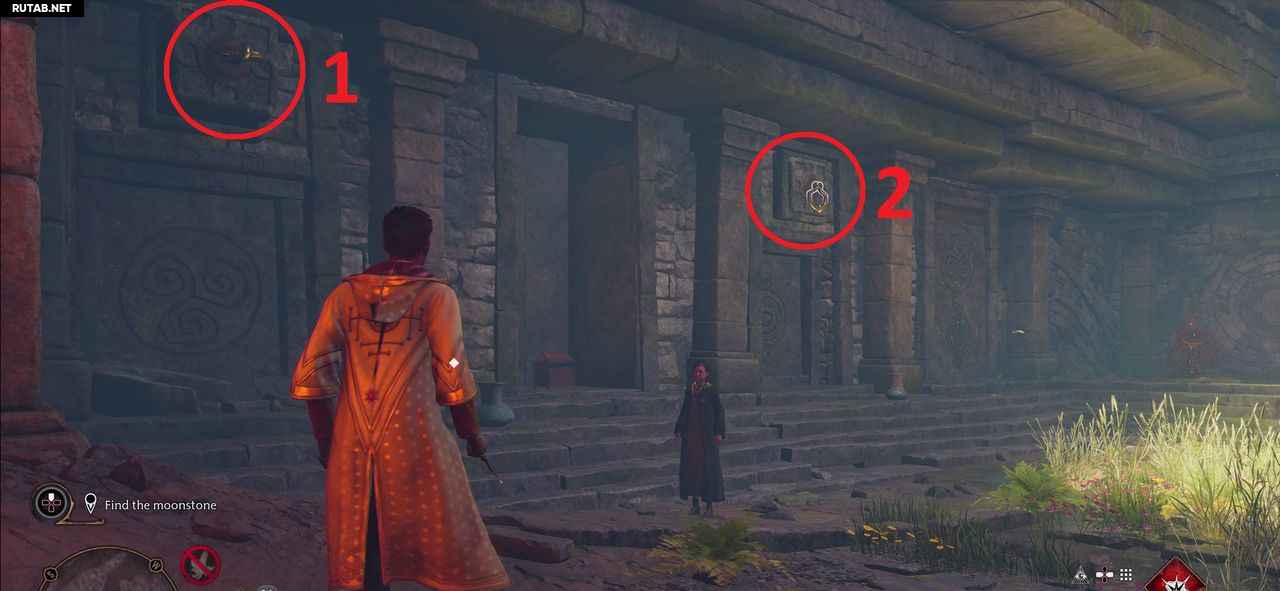 Здесь вам предстоит раскрыть двух мотыльков и привести их к постаментам рядом с воротами.