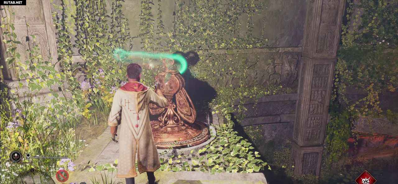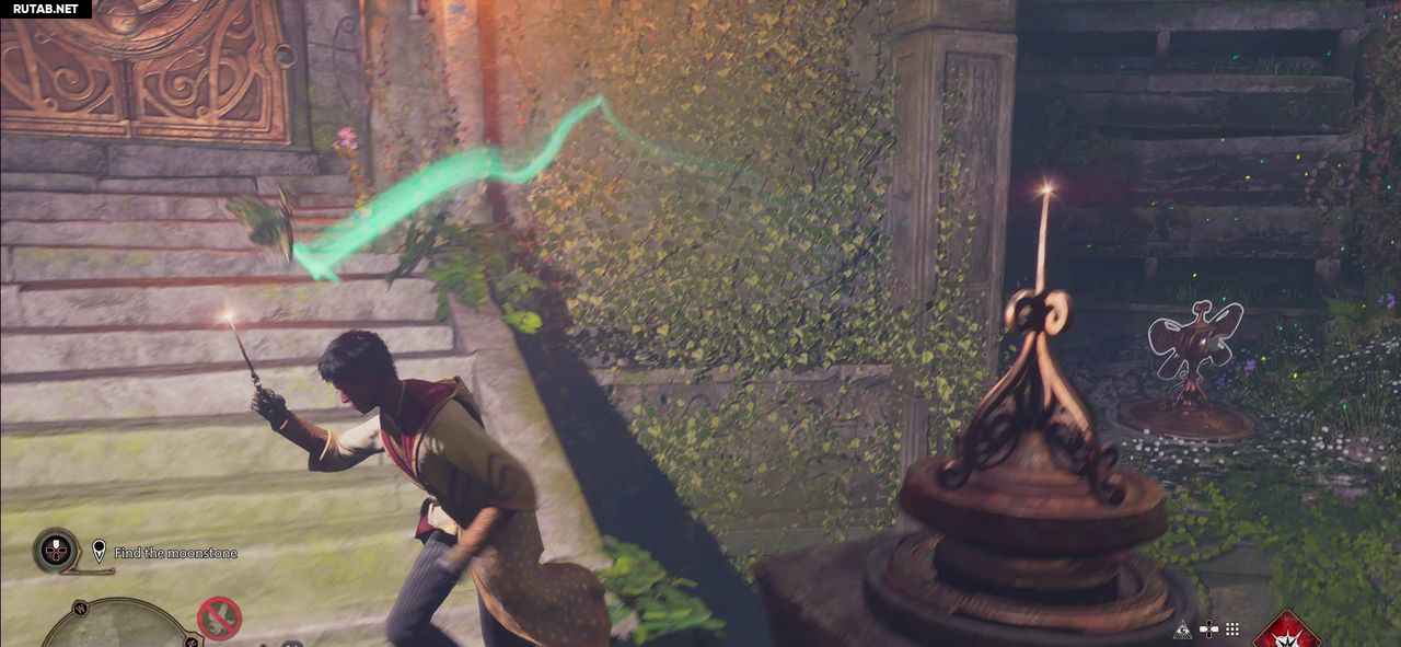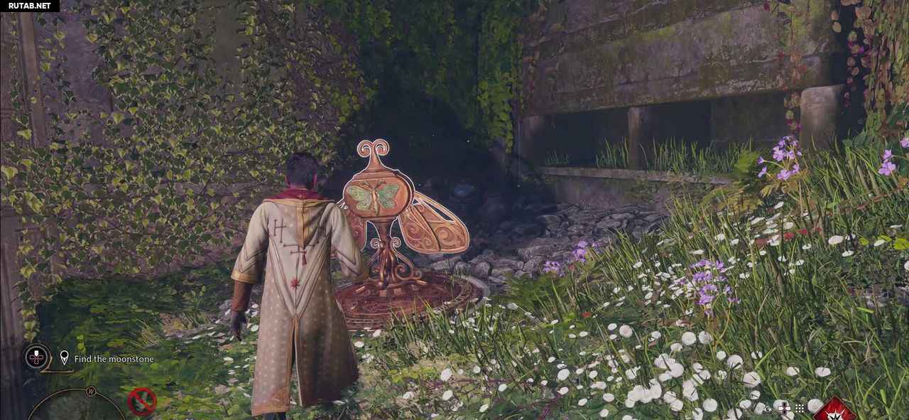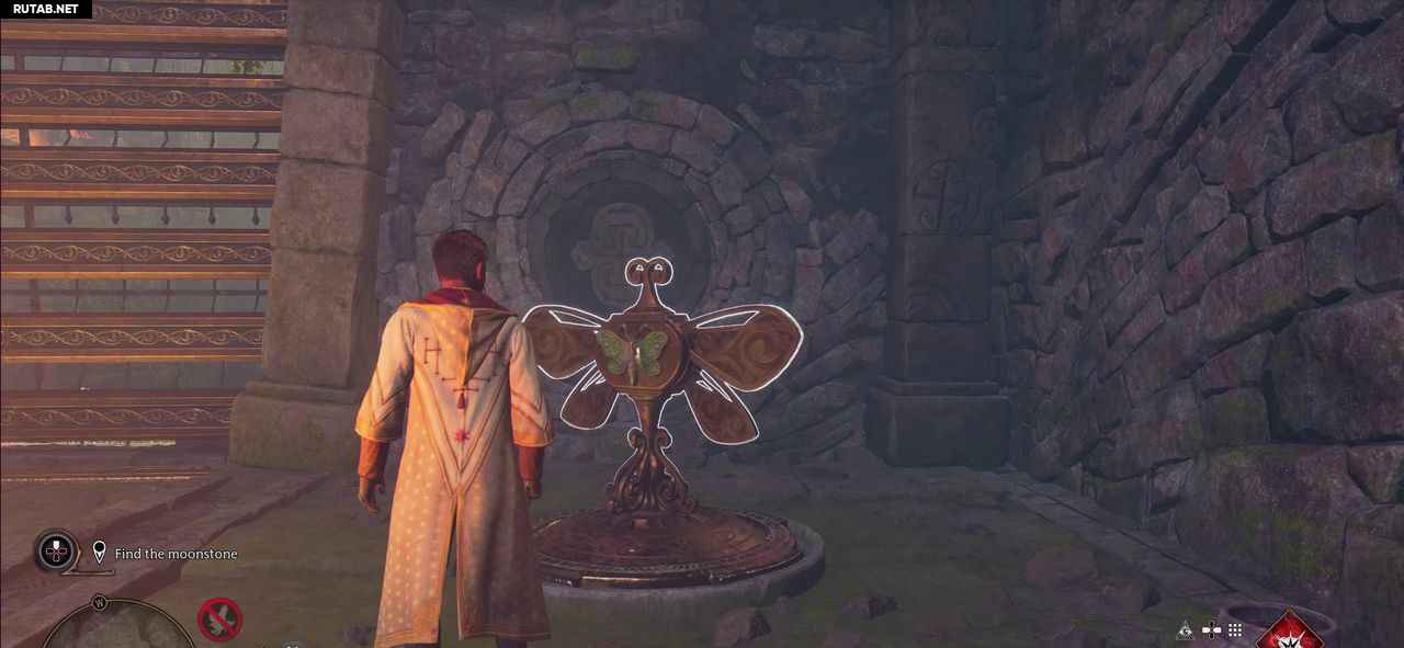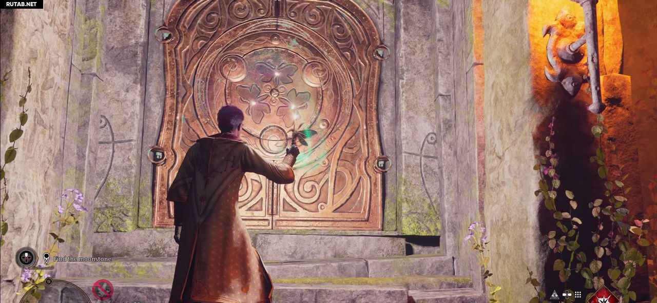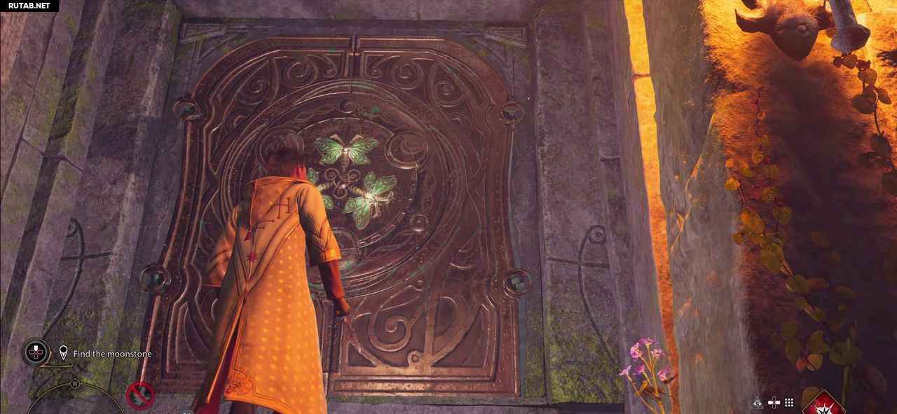 Отведите мотылька с помощью Люмоса к пьедесталу рядом с воротами.