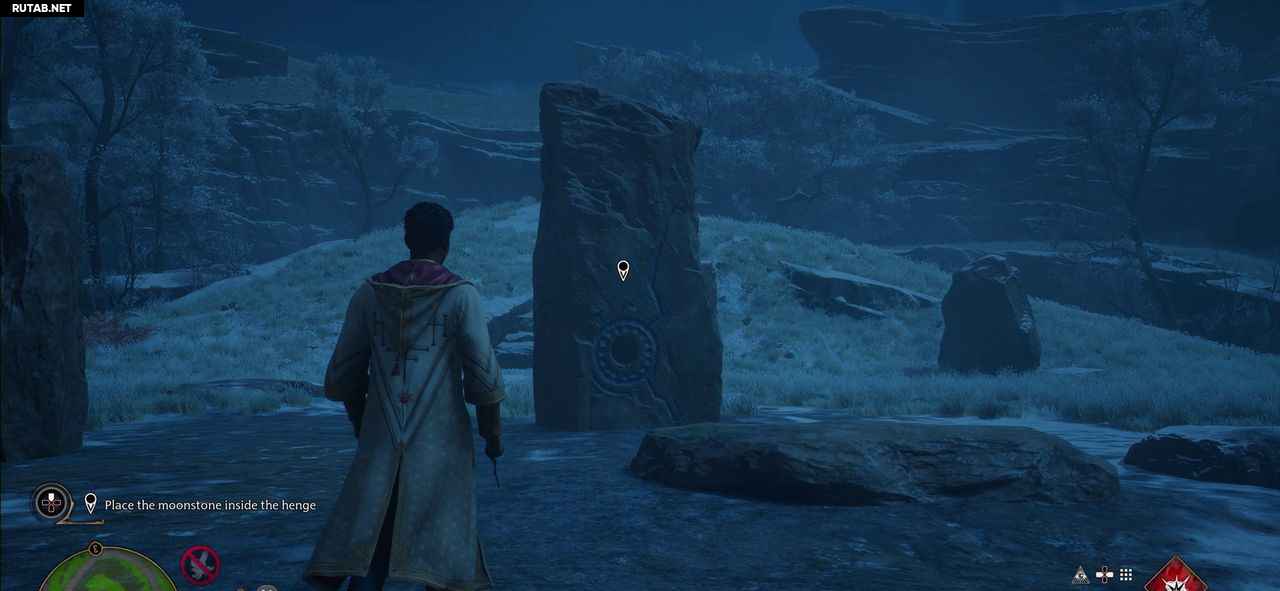 После кат-сцены вы окажетесь возле хенджа, доберитесь до него, спустившись с холма, где вы возрождаетесь, и поднявшись на другой холм. Поместите лунный камень в хендж.