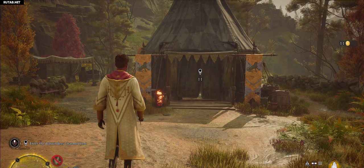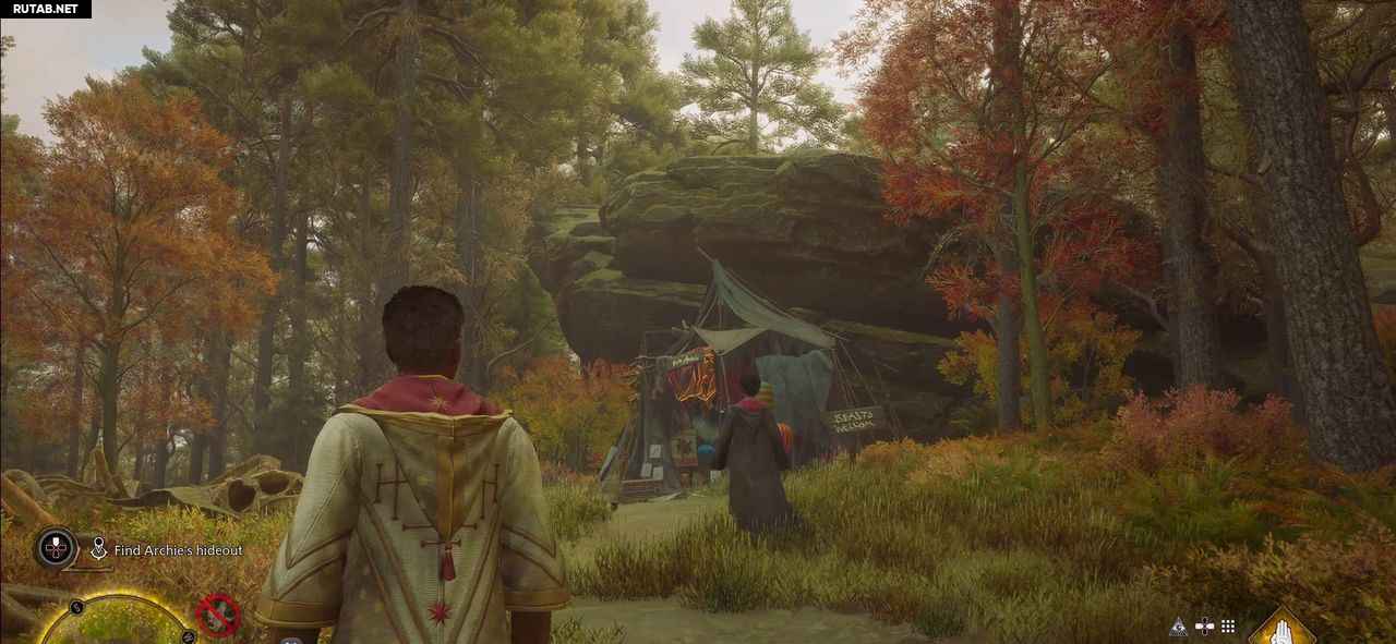 Внутри палатки следуйте по указанному пути. В конце палатки спуститесь вниз, чтобы найти Арчи.