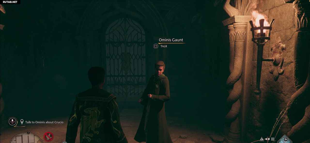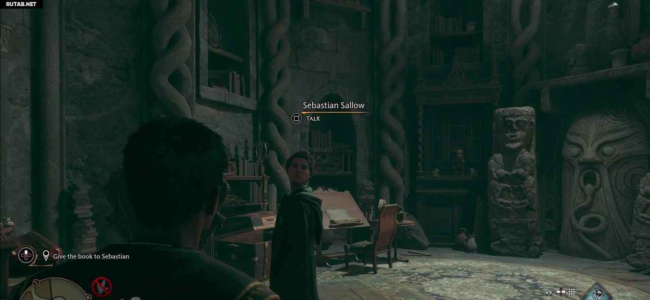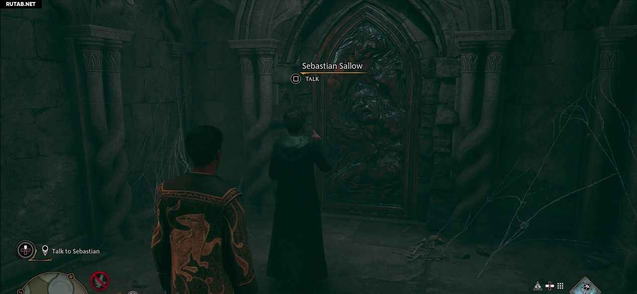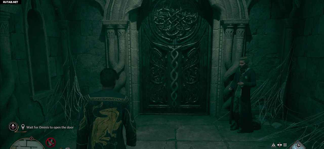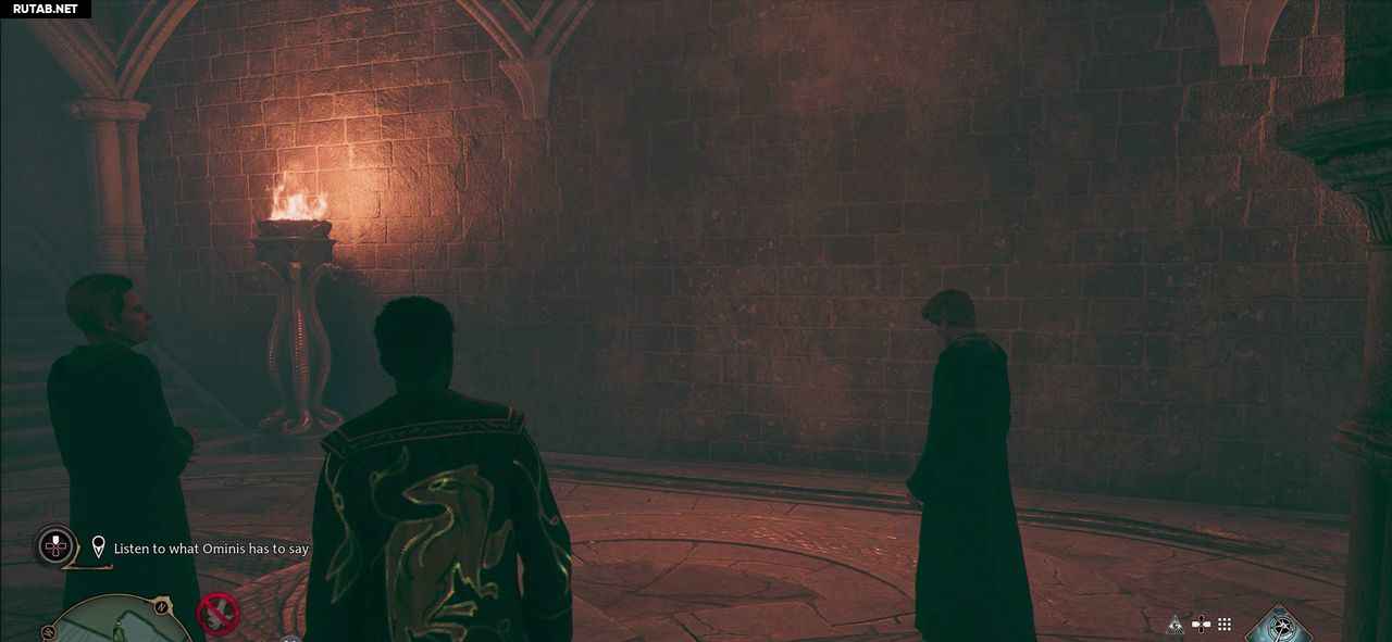 Поговорите с Себастьяном возле гостиной Слизерина. Затем следуйте за Себастьяном, чтобы встретить Оминиса.
